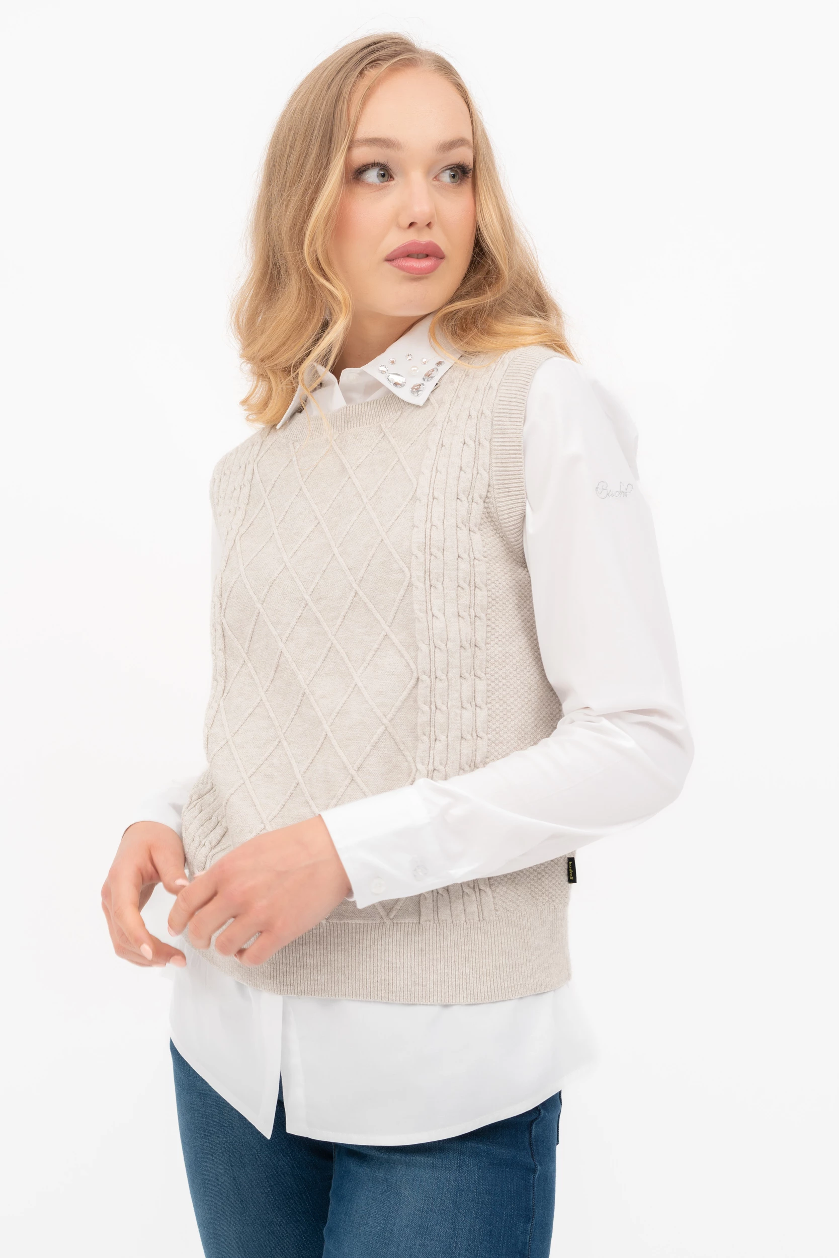 BUDMIL Kötött mellény Női S bézs melanzs 20050806-001242-0299