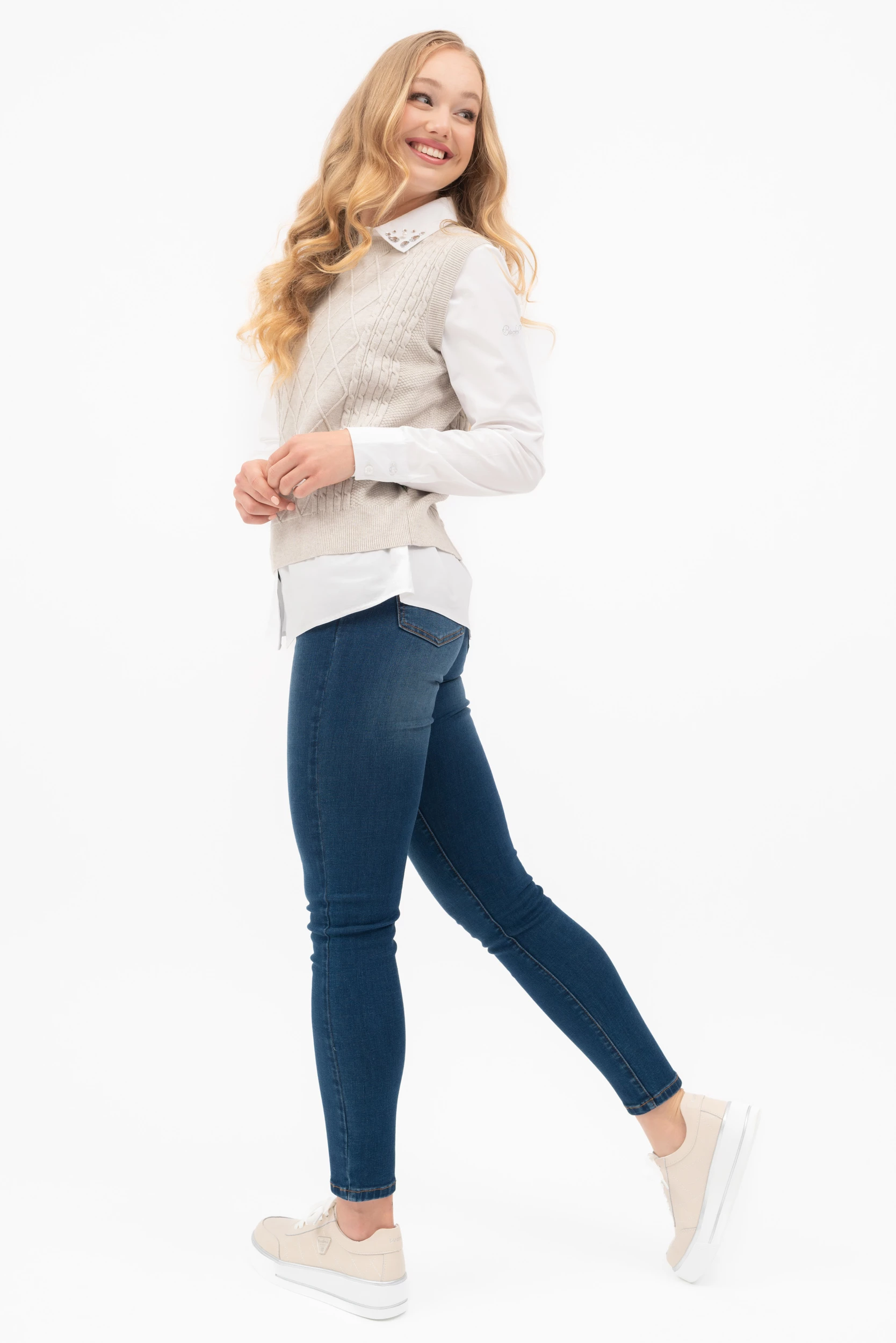 női vékony kötött mellényegyenes fazonfémcímkével díszítve
