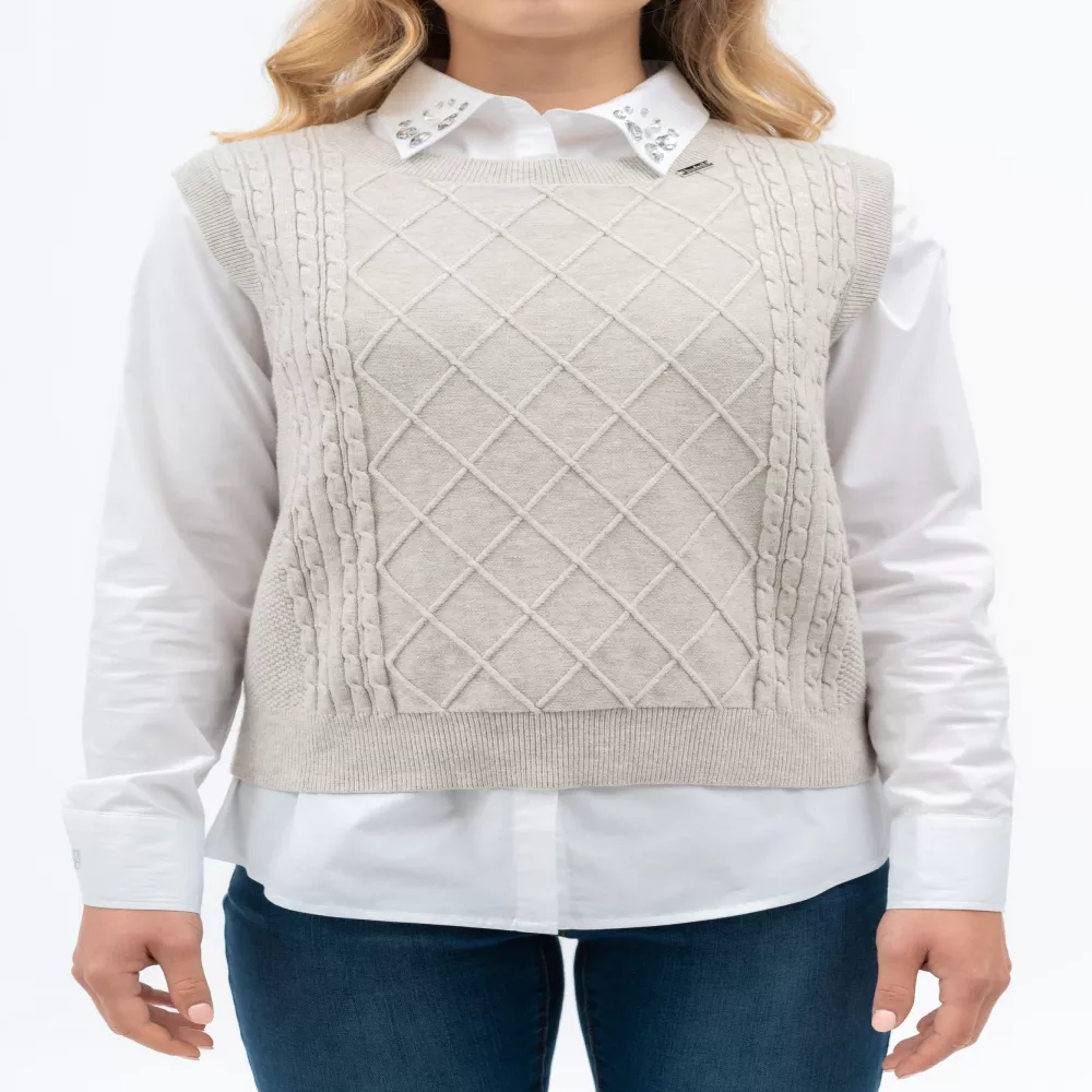 BUDMIL Kötött mellény Női XS bézs melanzs 20050806-001242-0199