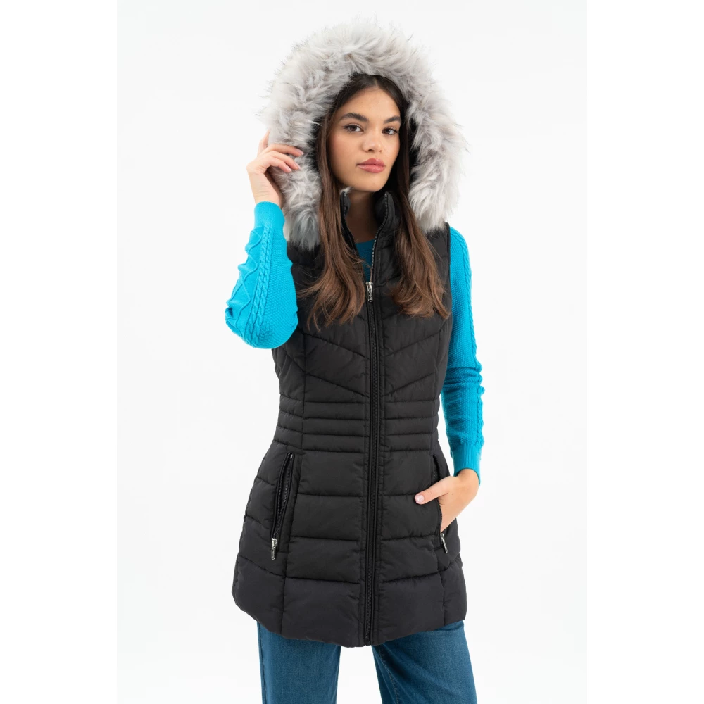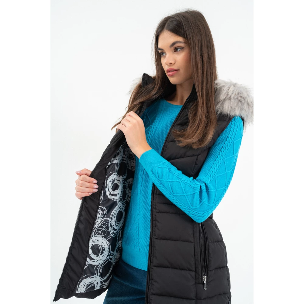 női vastag mellénykapucni lecipzározhatókapucniról a szőrme leszedhetőkapucni magassága szabályozhatóhímzéssel és fémcímkével díszítve