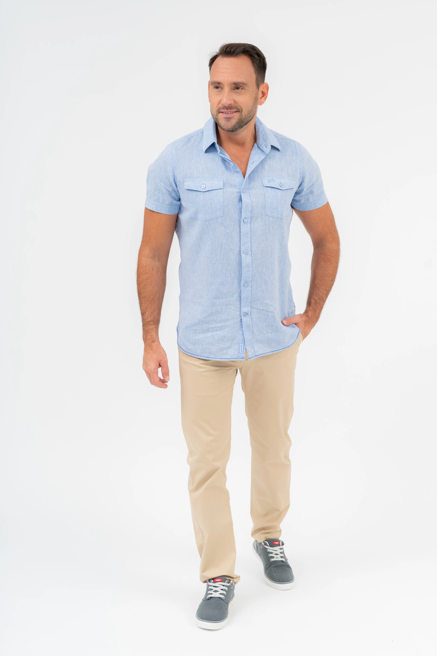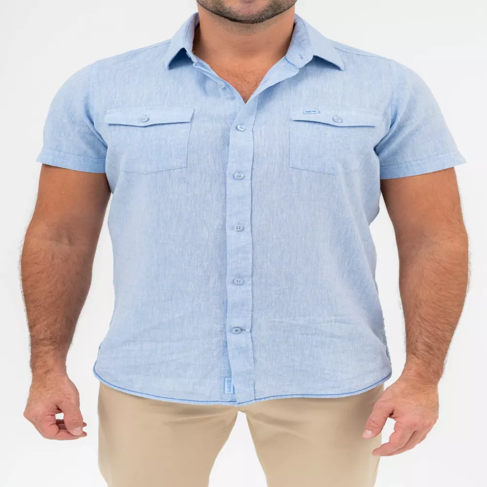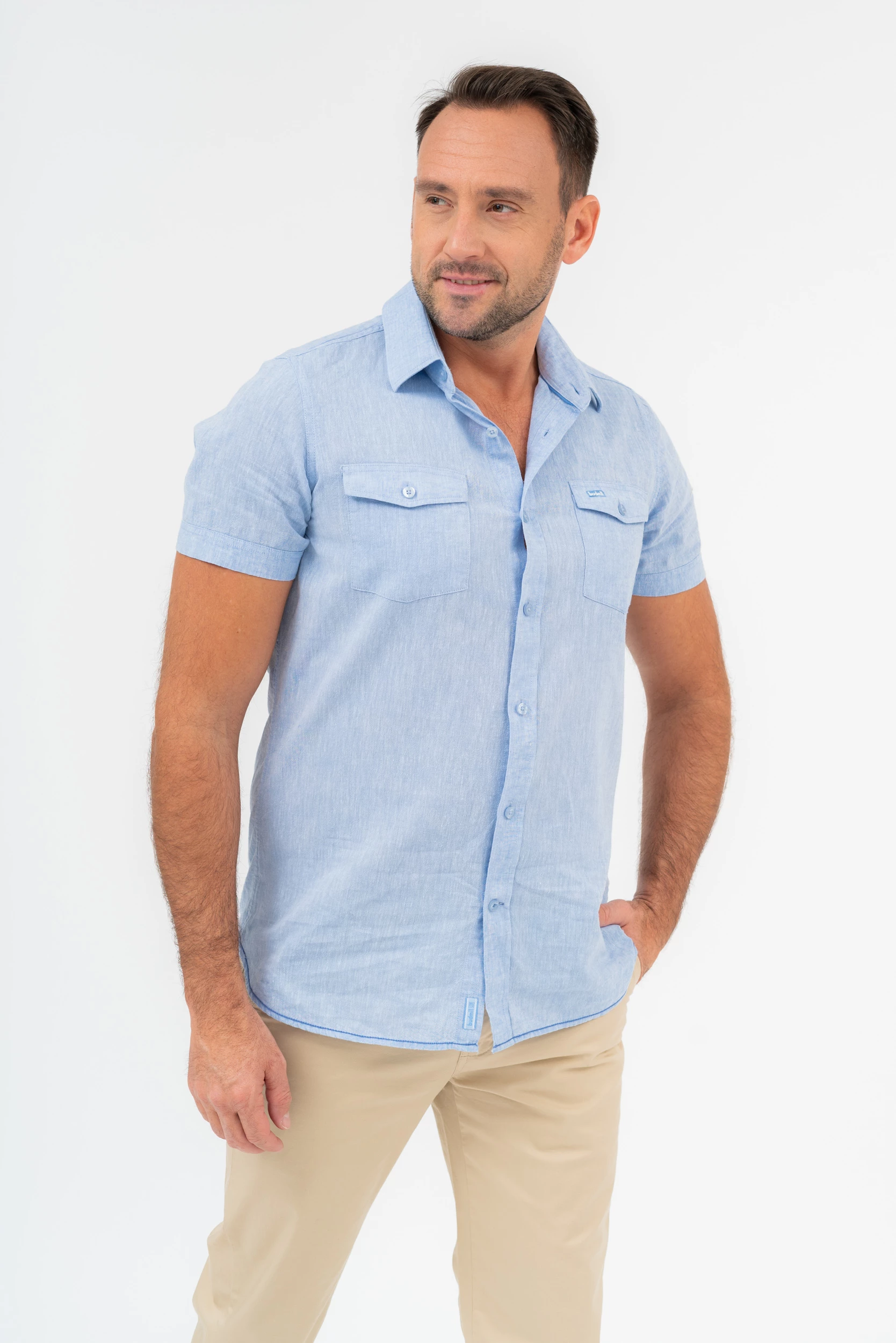 modern fit rövid ujjú férfi ingenyhén szűkített fazonhímzéssel és szövött címkével díszítve