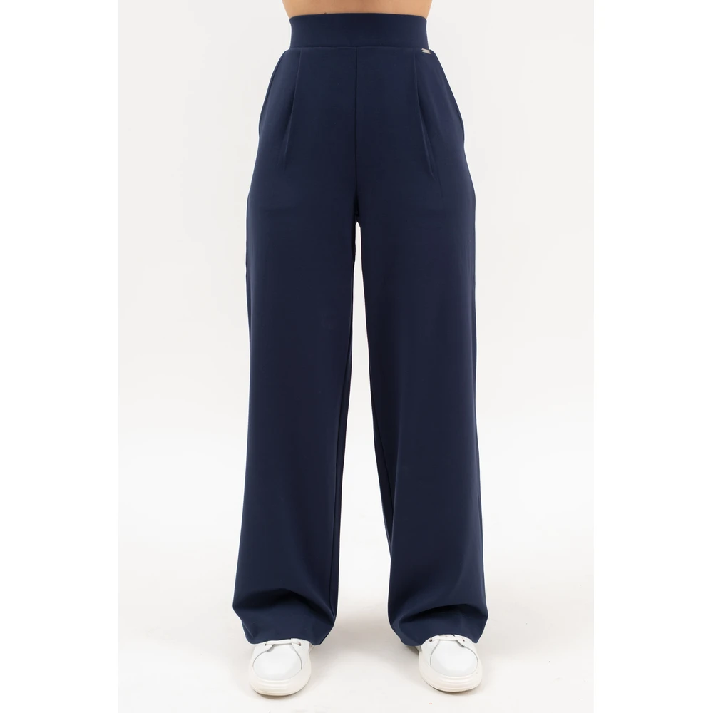 A modellt letisztult fémcímkés díszítés teszi teljessé, amely visszafogott, mégis stílusos részletet ad a nadrágnak. A sötétkék színben kapható, L méretben.