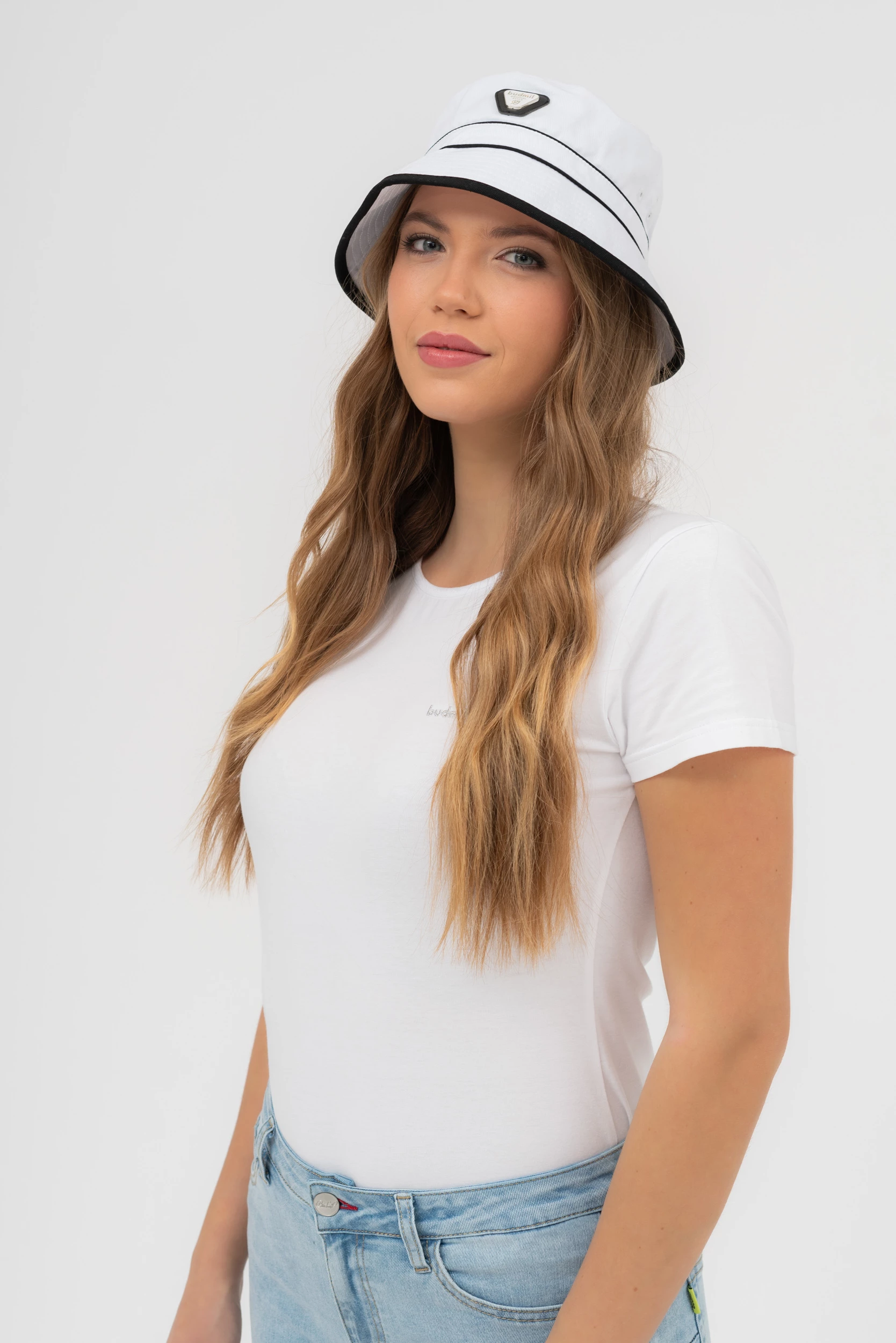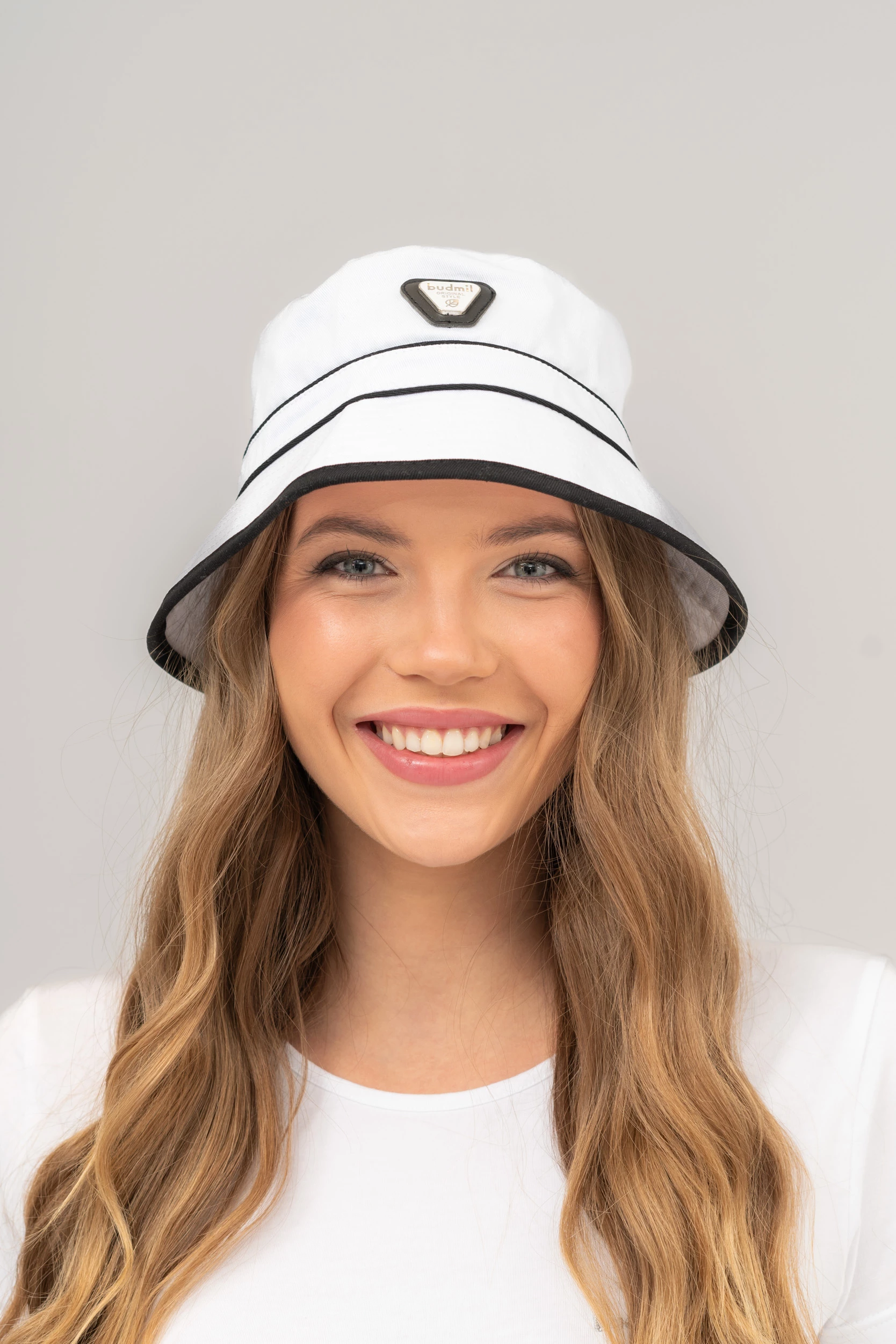 nyári halászkalap szövött anyagbólfémcímkével díszített