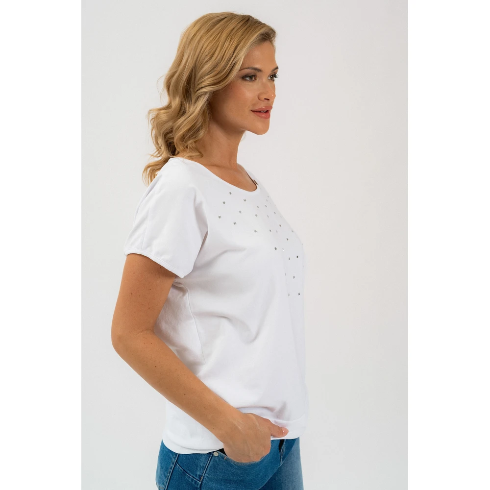 A póló alján széles, rugalmas pánt található, amely formás sziluettet és stabil tartást kölcsönöz. A modellt elegáns strasszos díszítés teszi különlegessé, amely aprólékos részletet ad az összképhez.