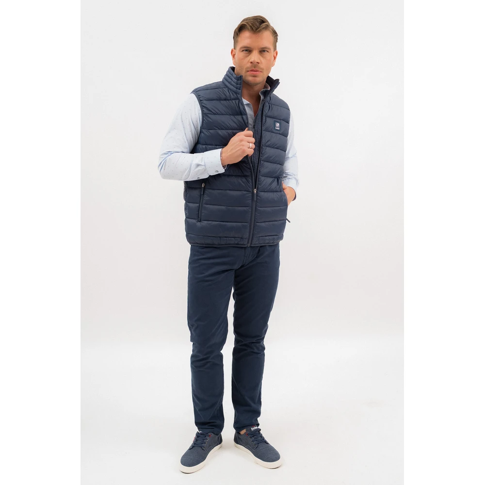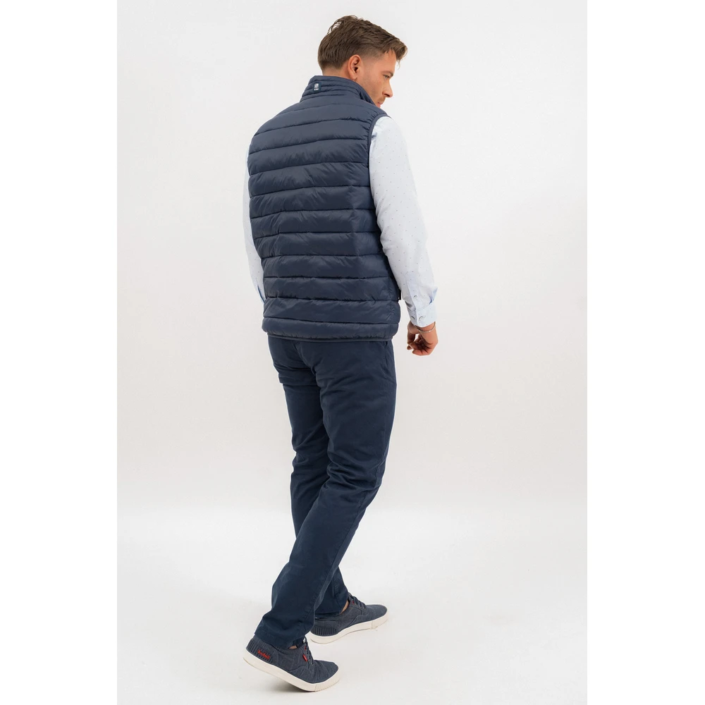Ez a férfi vékony steppelt mellény praktikus viselet az átmeneti időszakra. Könnyű, komfortos kialakítása ideális rétegezéshez, sportosan letisztult megjelenést biztosít.