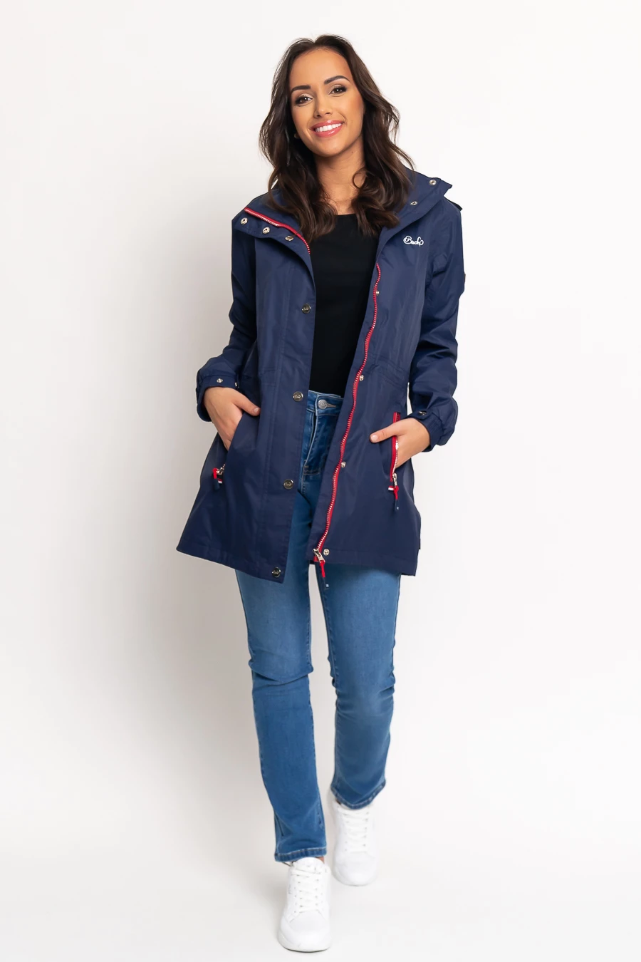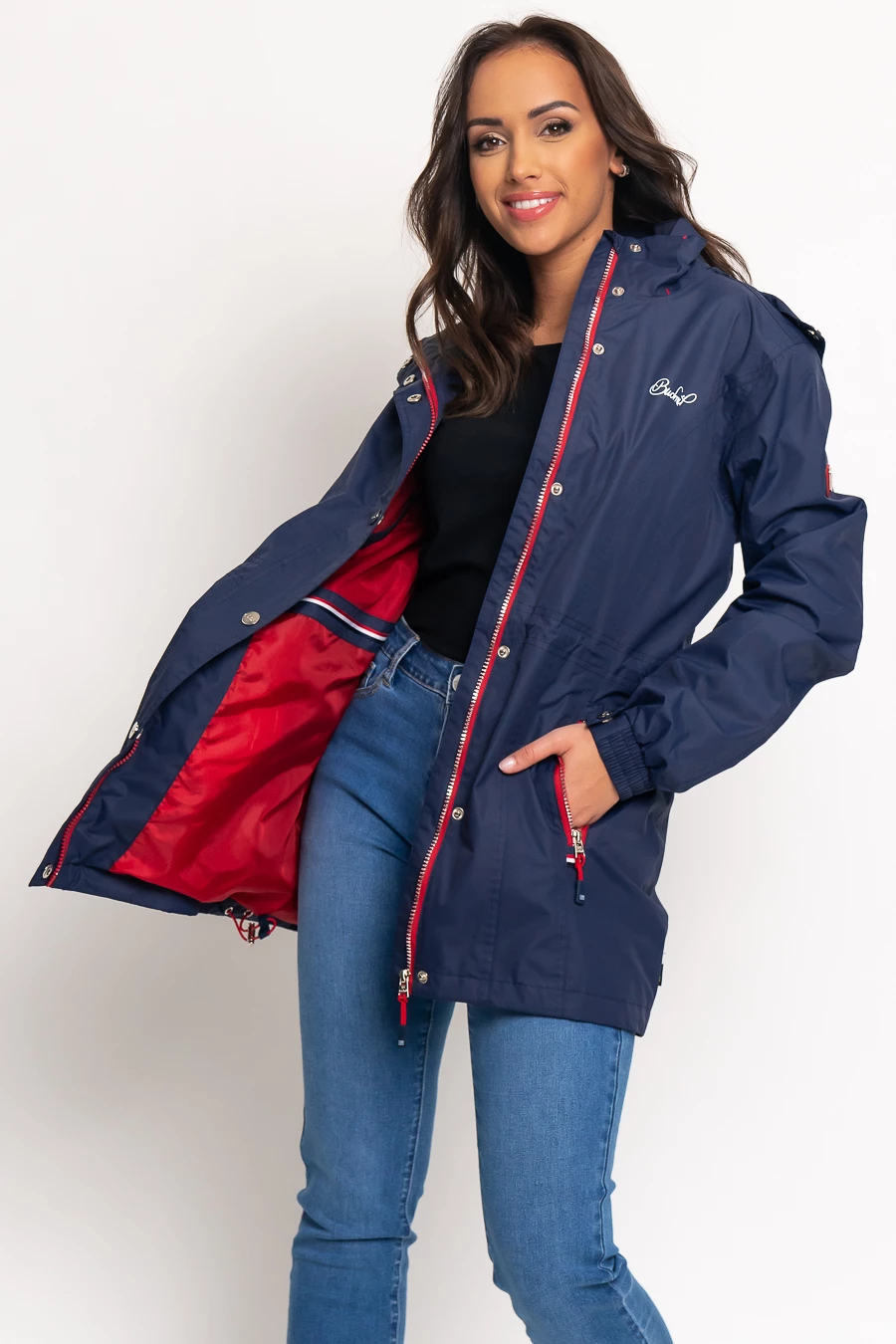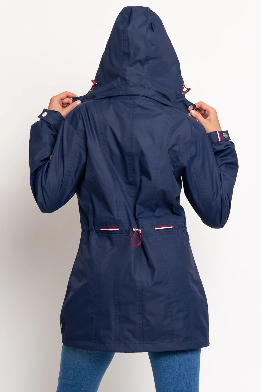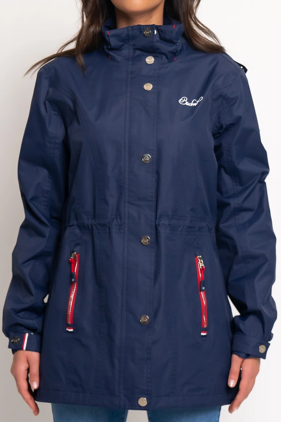 női széldzseki vízálló és lélegző anyagból100% poliészter hálós bélésselvízálló, hegesztett varratokkalkapucnija lecipzározhatónyomott mintával és fémcímkével díszített