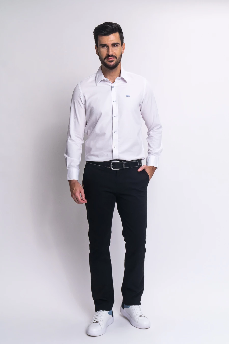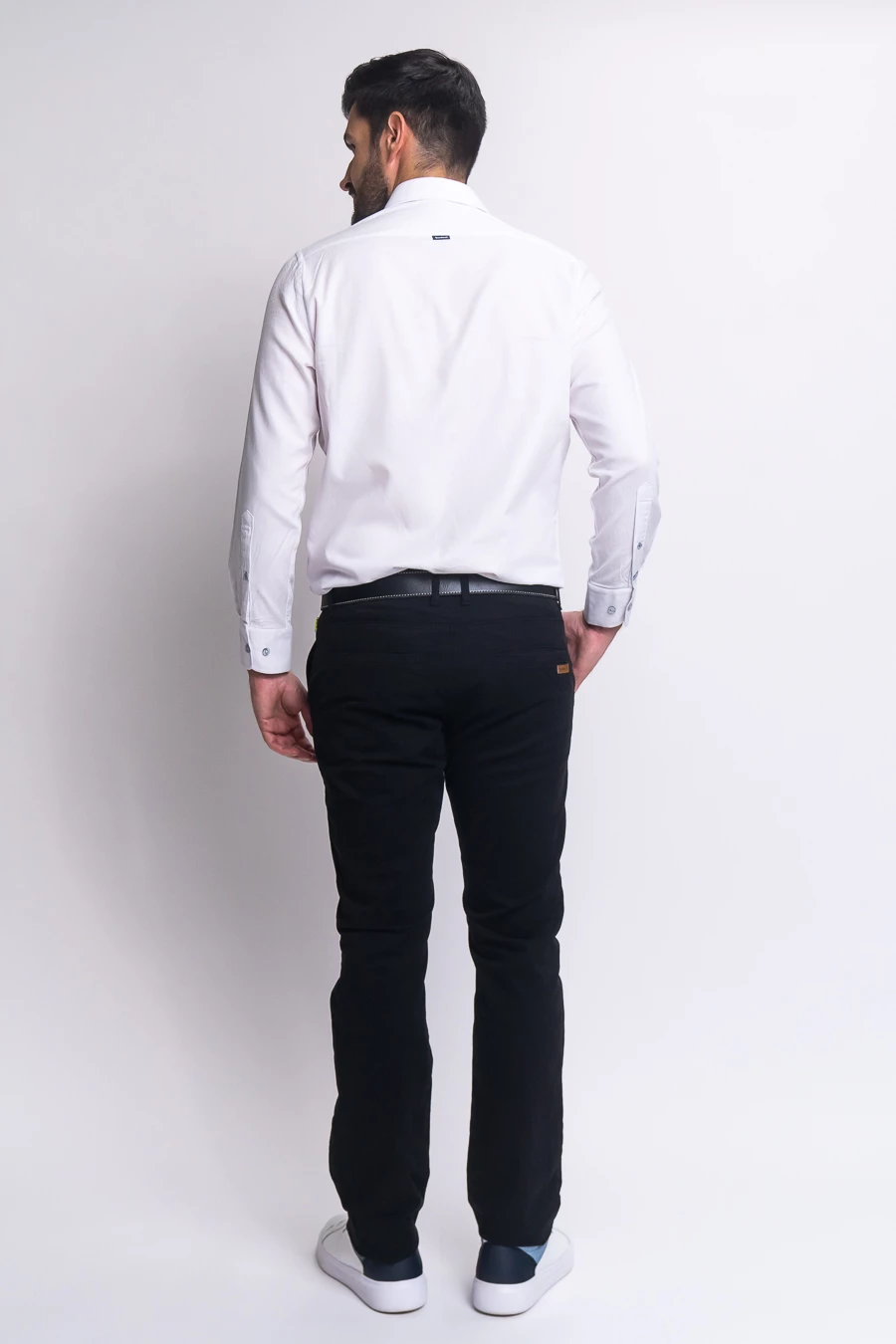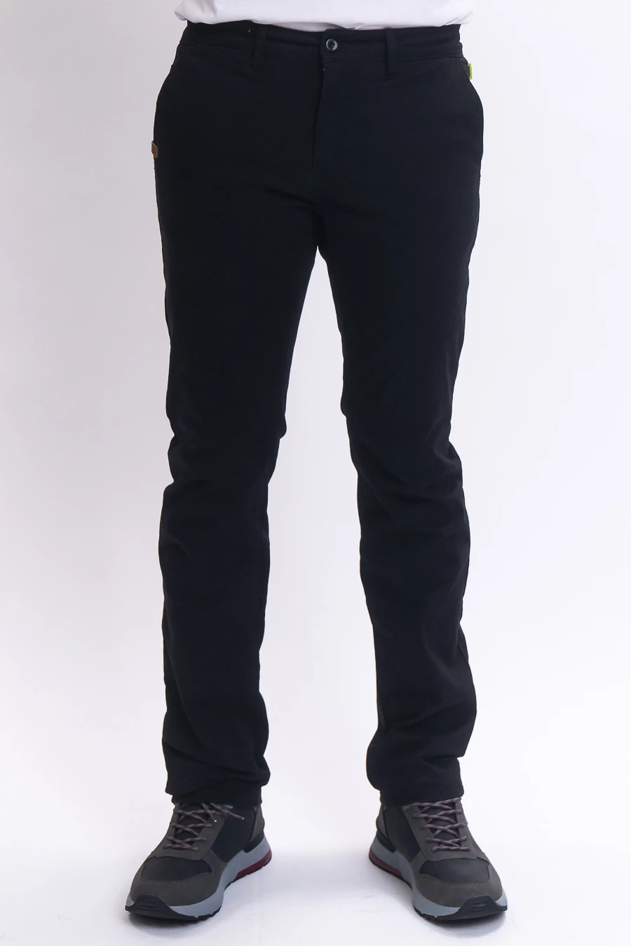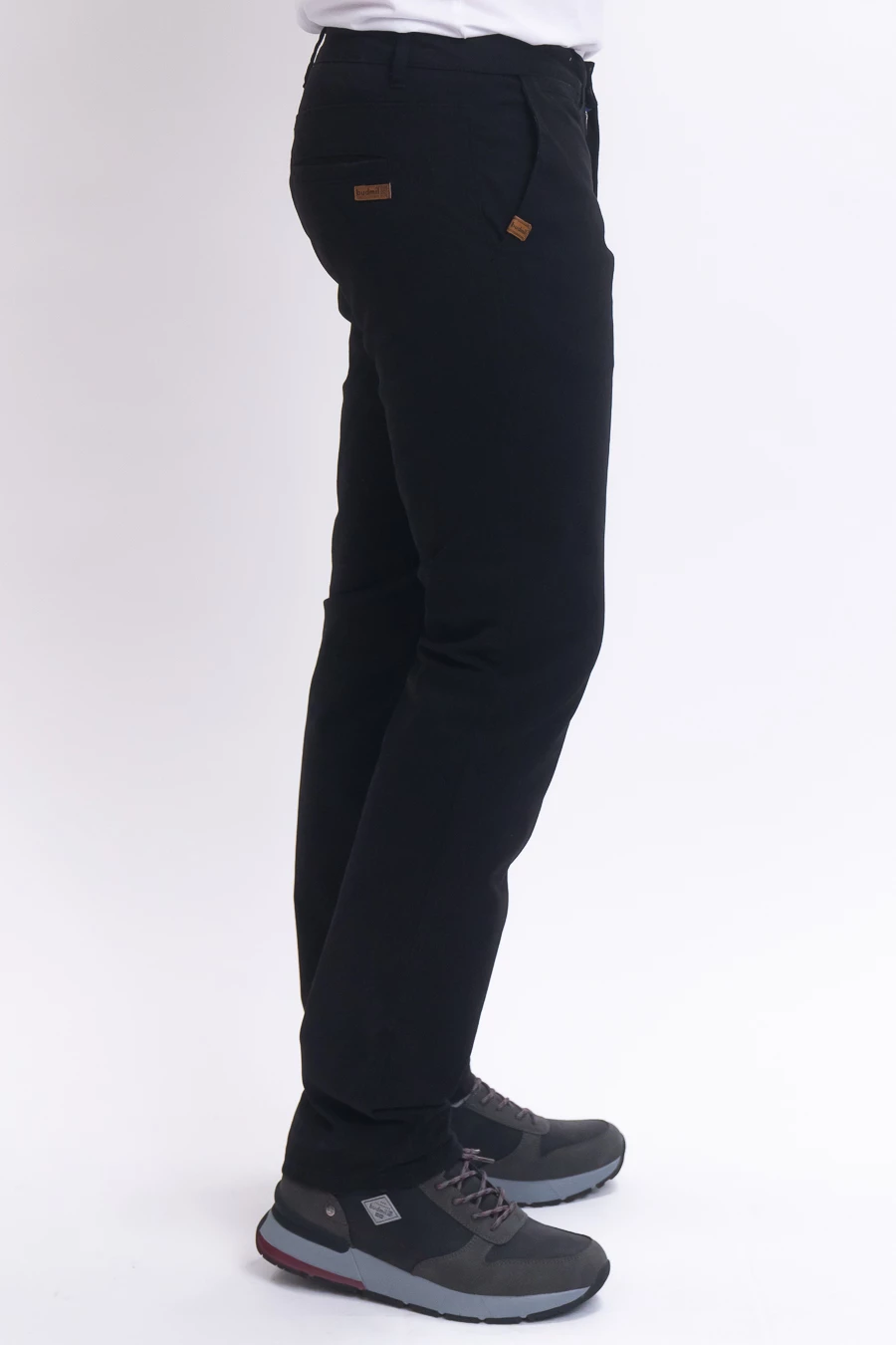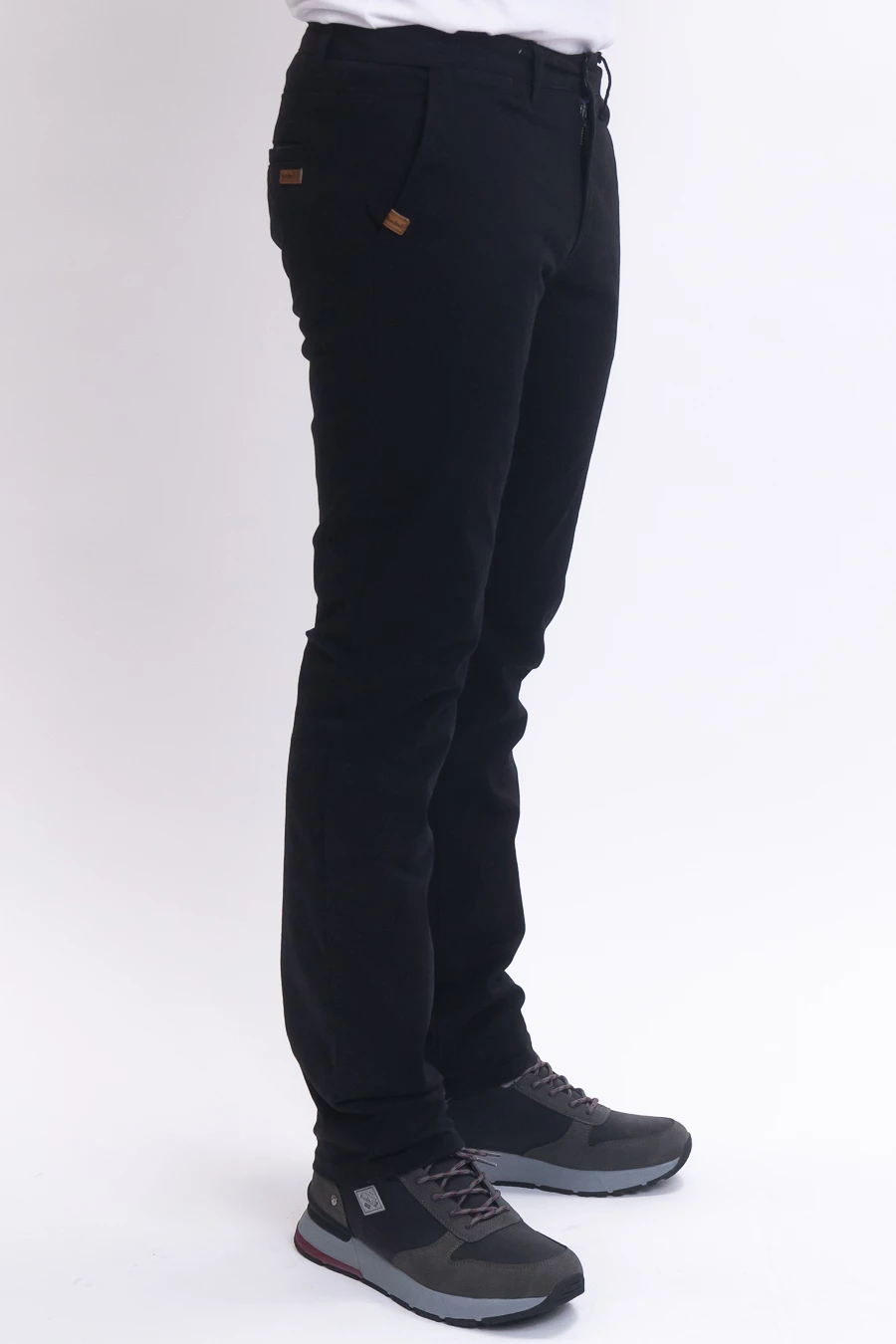 férfi nadrág rugalmas anyagbólműbőrés fémcímkével díszített