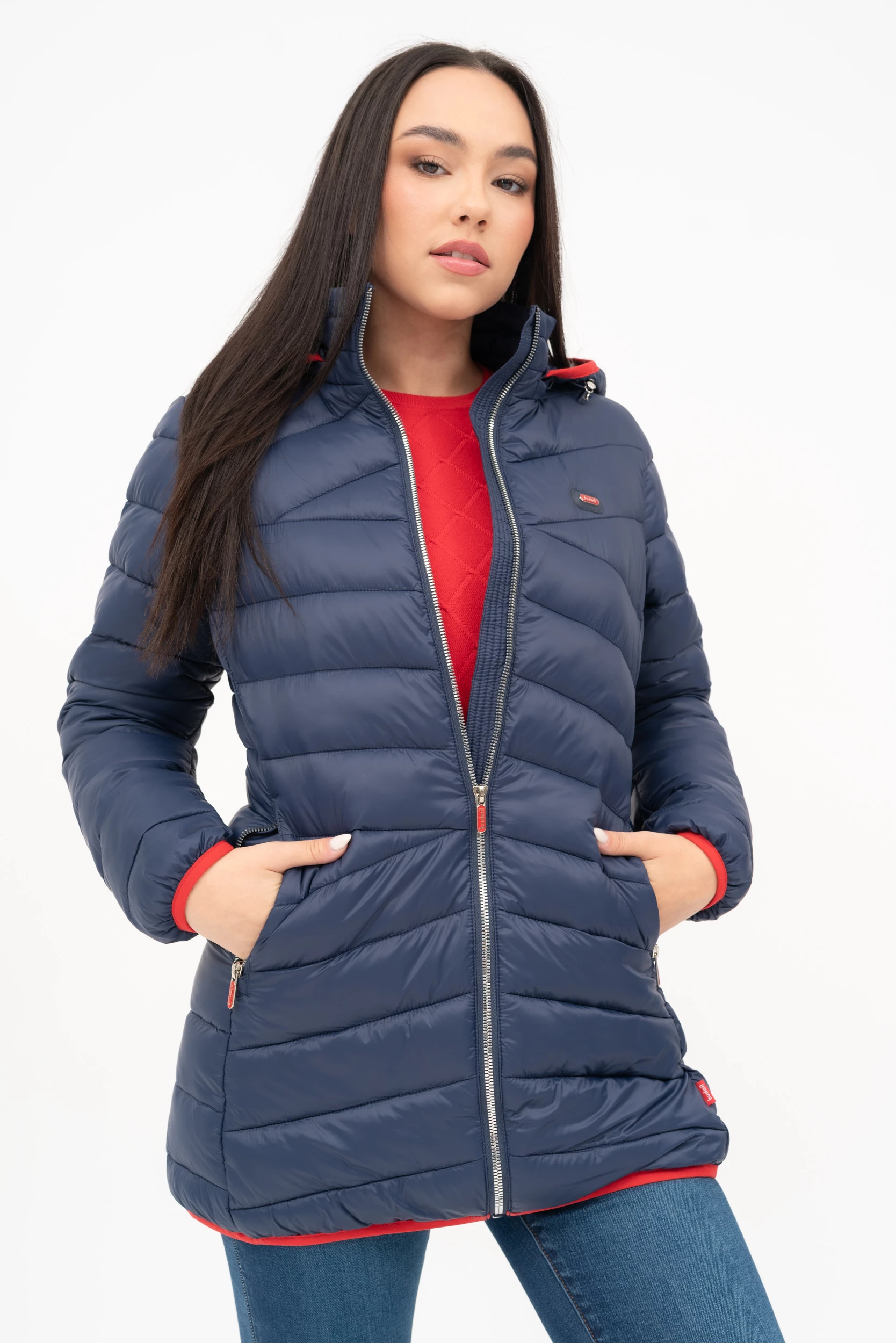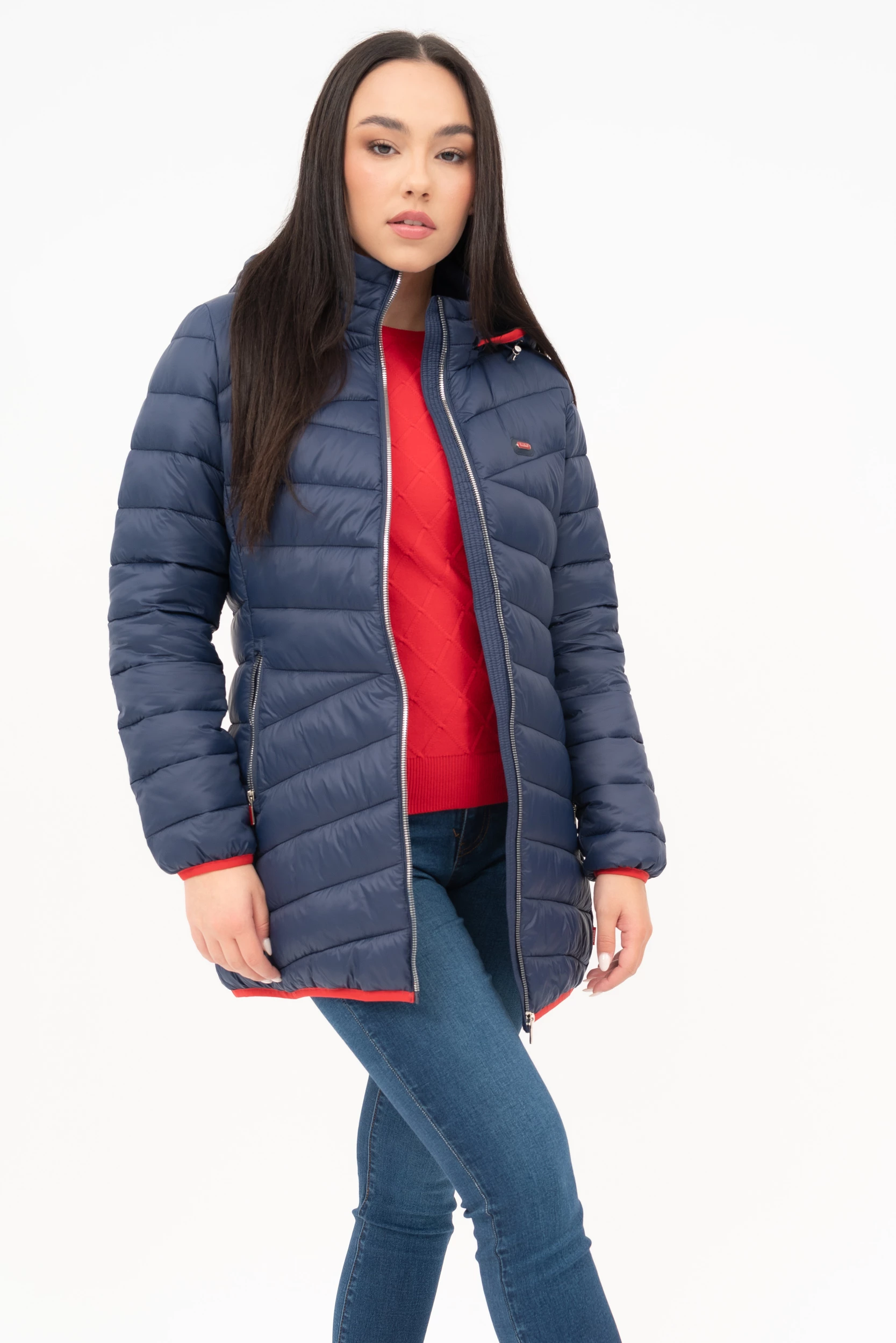 női vékony dzsekikapucni lecipzározhatófémcímkével díszítve