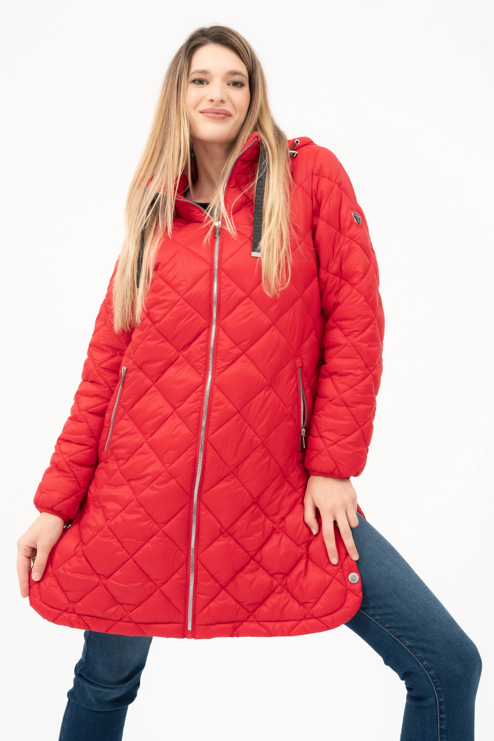 női vékony dzsekikapucni lecipzározhatókapucni magassága szabályozhatóbelső zseboldala alja patentokkal nyithatófémcímkékkel díszítve