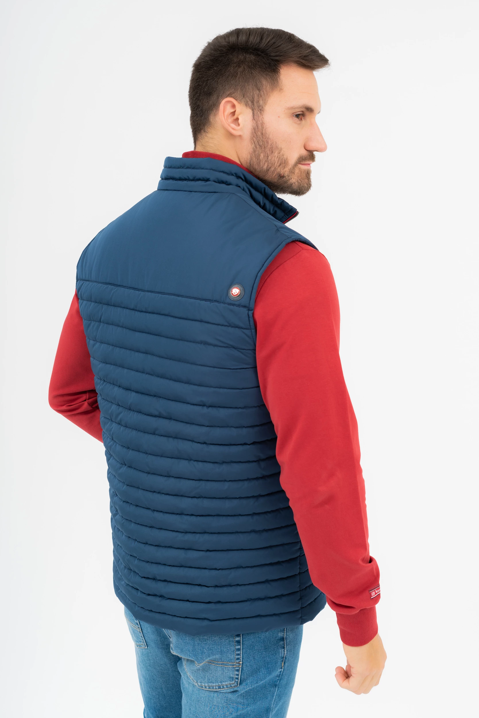 férfi steppelt vékony mellényfémcímkével díszítve