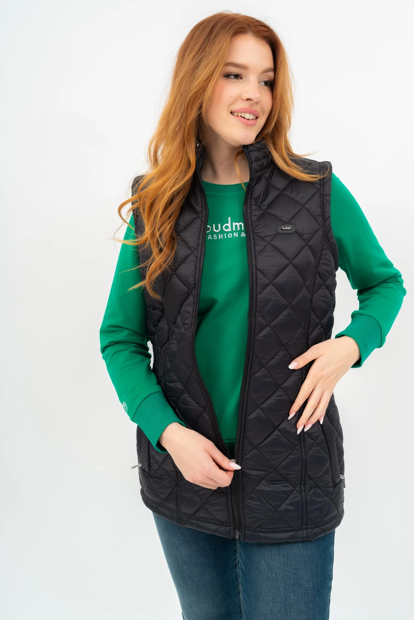 női steppelt vékony mellény belső zsebfém címkével díszítve