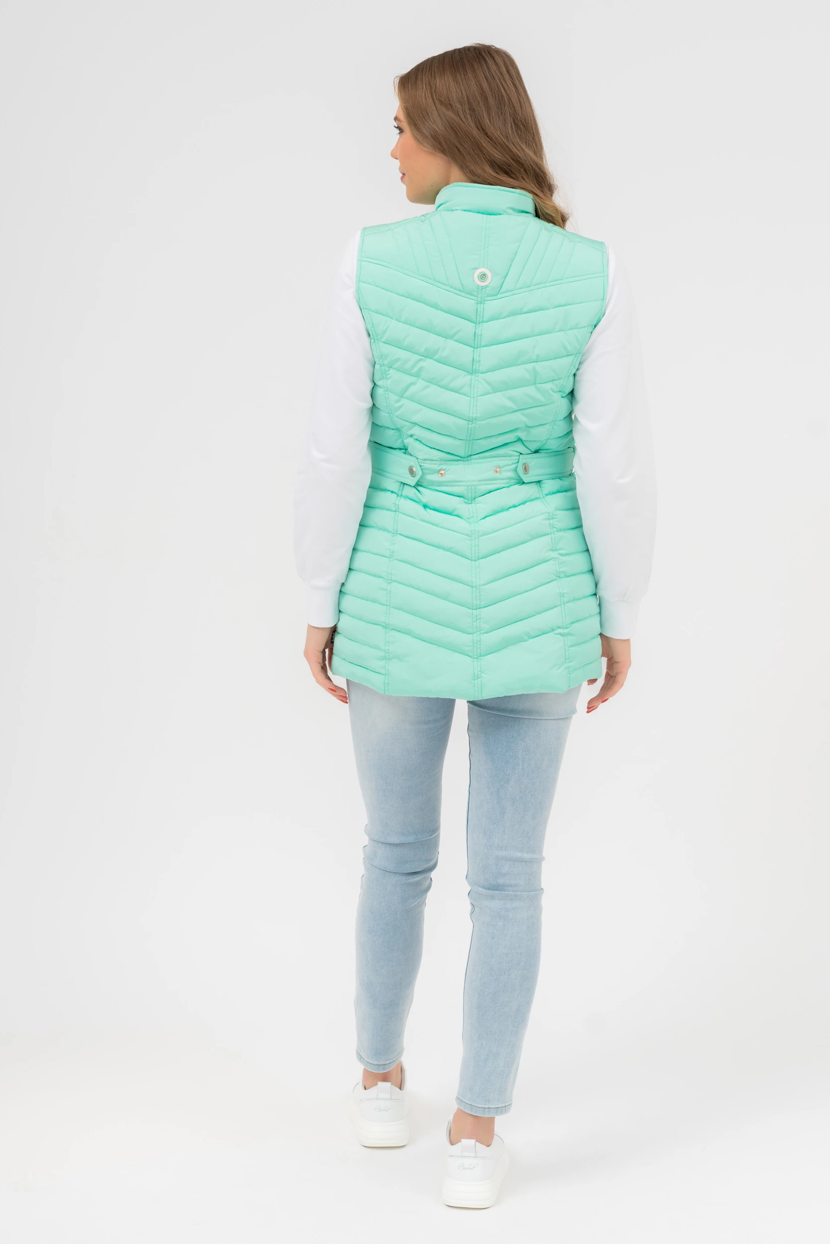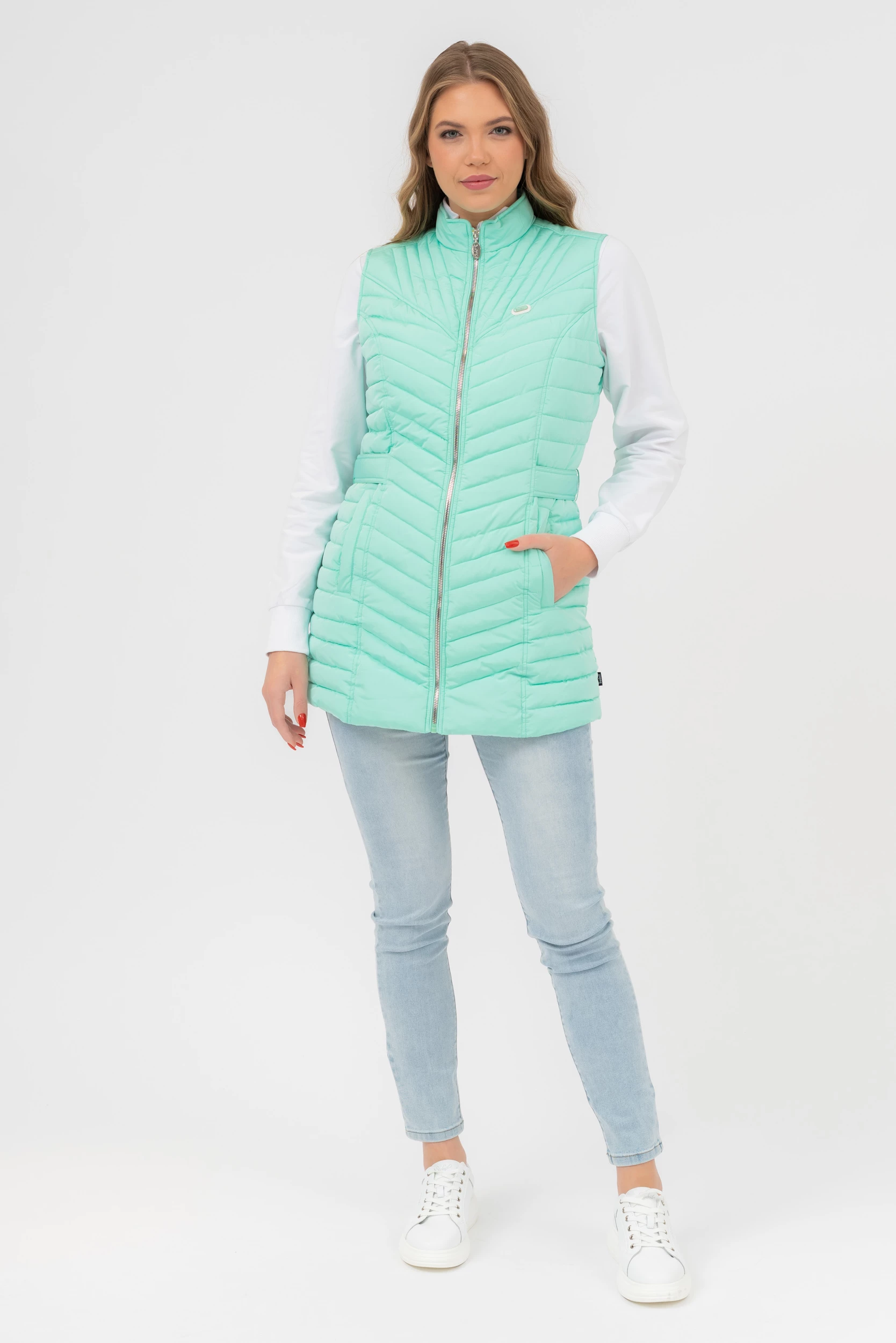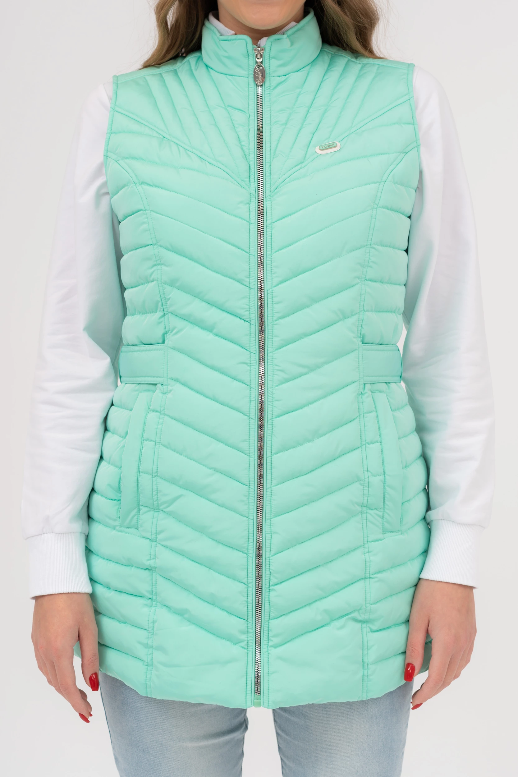 női steppelt vékony mellénykarcsúsított, hosszított fazonfémcímkével díszítve