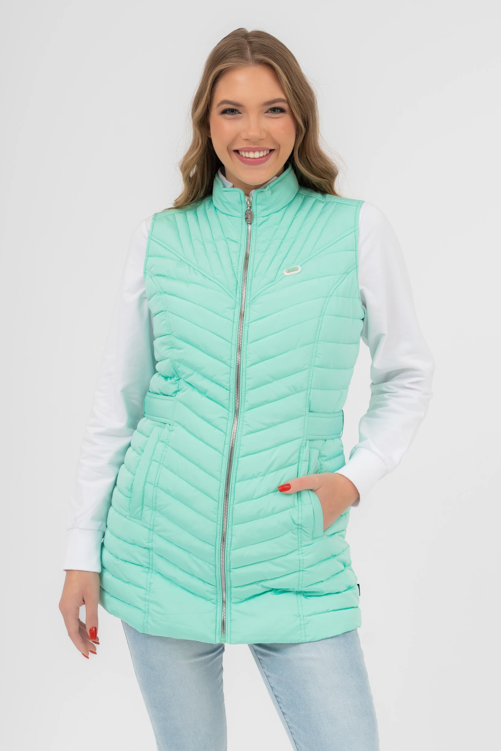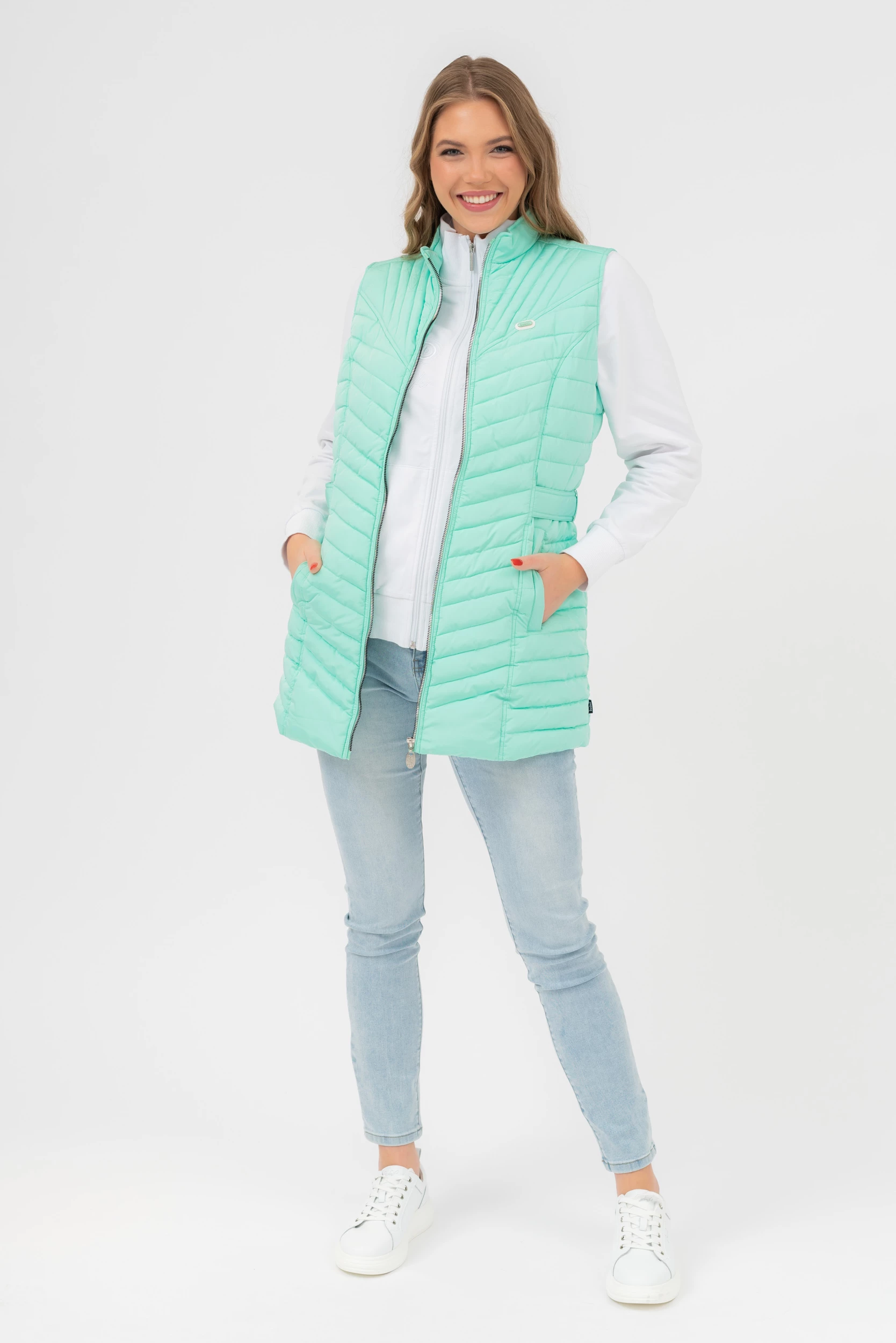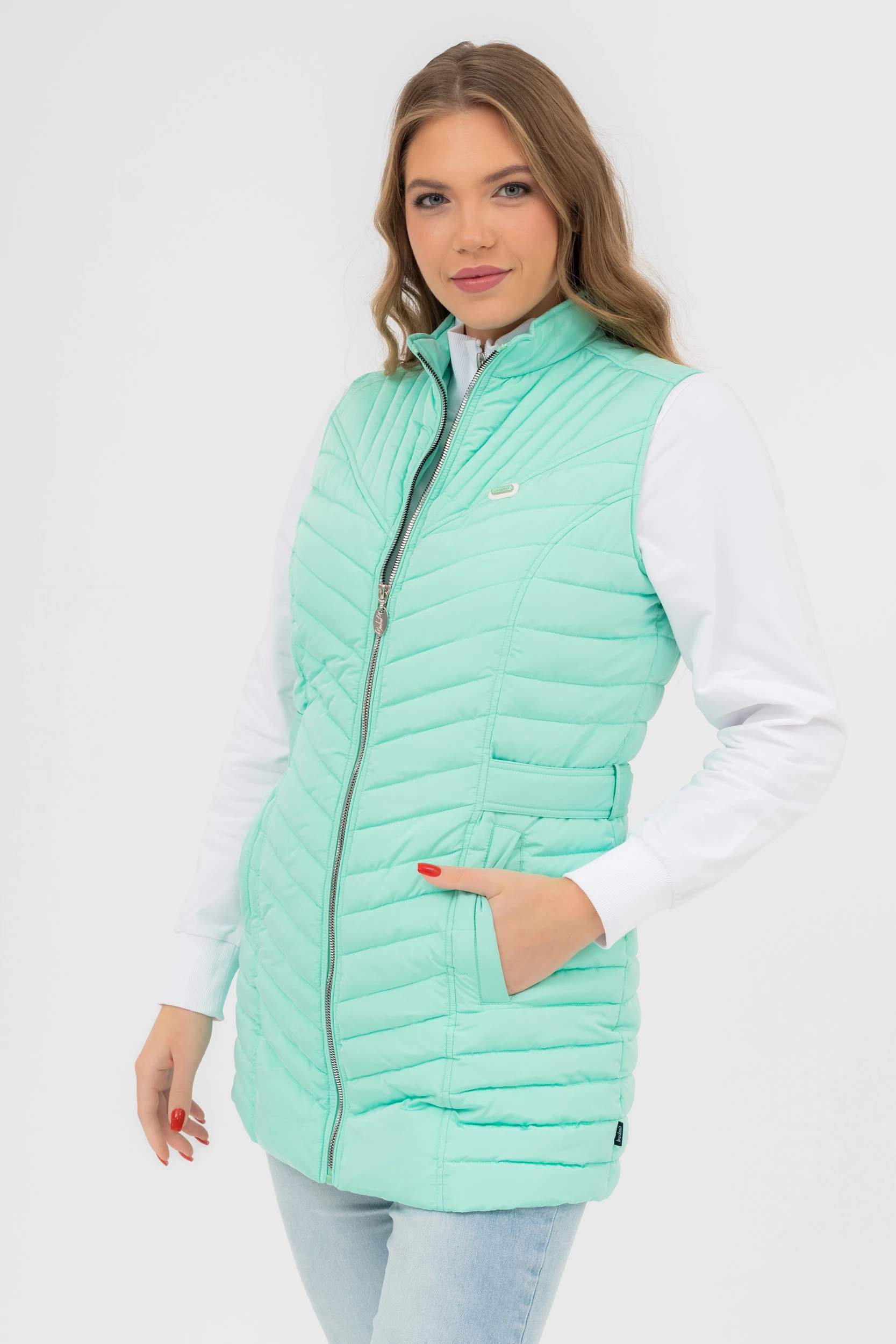 női steppelt vékony mellénykarcsúsított, hosszított fazonfémcímkével díszítve