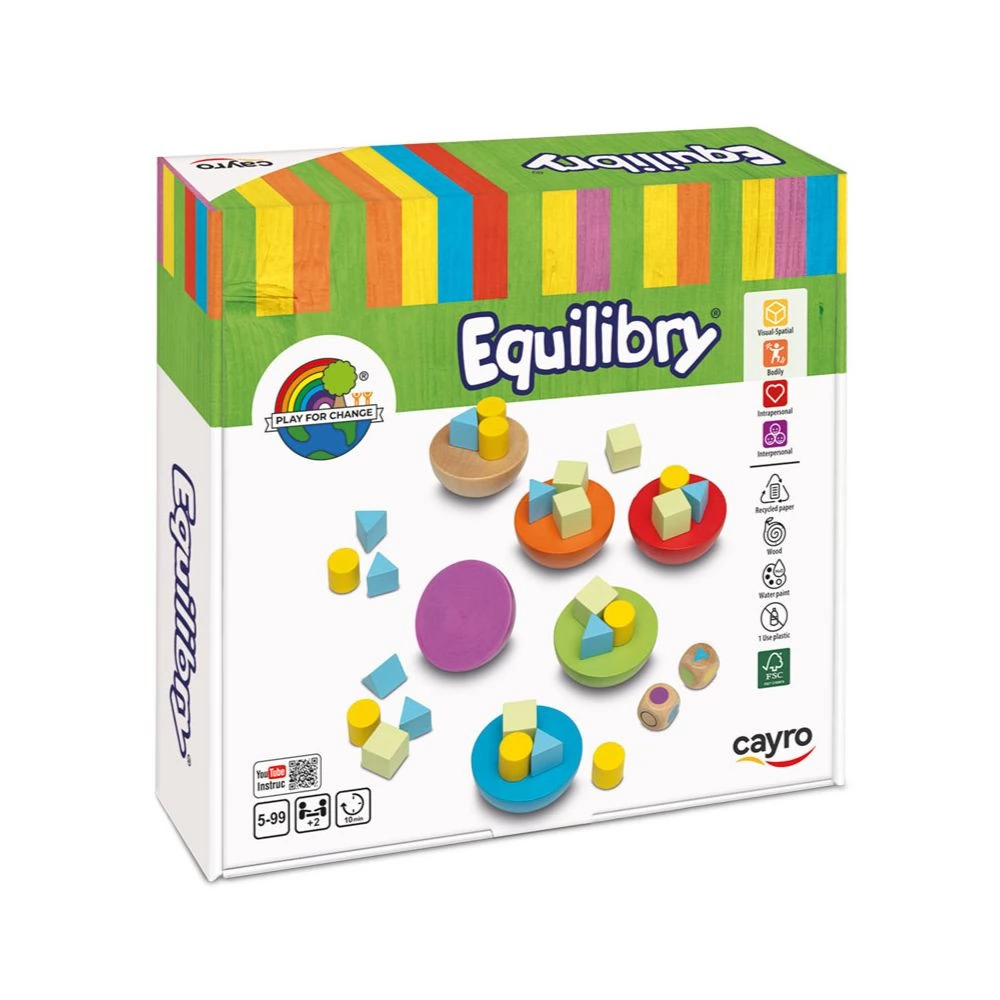 Az Equilibry egy különleges ügyességi játék, amely már ránézésre is kihívást ígér: színes formák, ingatag talapzat és a dobókocka kiszámíthatatlan utasításai várják a játékosokat. Az első darabok még könnyedén elhelyezhetők, de ahogy épül a szerkezet, egyre nagyobb lesz a feszültség. Vajon ki tudja úgy rakni a következő elemet, hogy az egész torony ne dőljön le?