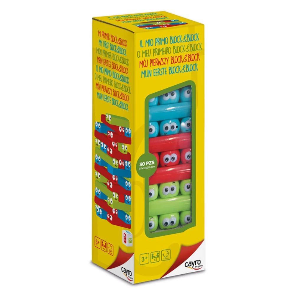 A My First Block & Block egy látványos, ügyességre épülő játék, amelyben a játékosok felváltva húznak ki színes blokkokat a toronyból, miközben ügyelnek arra, hogy az építmény ne dőljön össze. A játék izgalmas kihívást rejt: mennyire tudod stabilan mozgatni a darabokat anélkül, hogy kibillentenél.