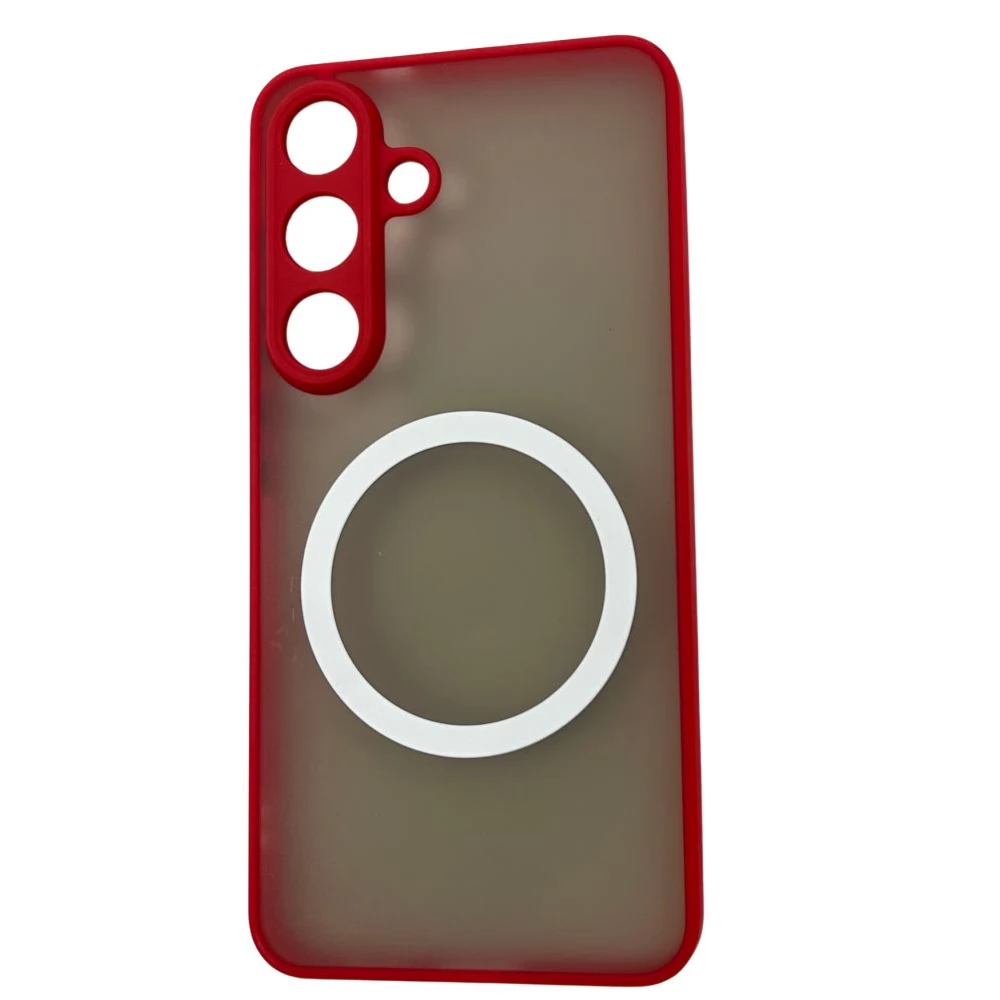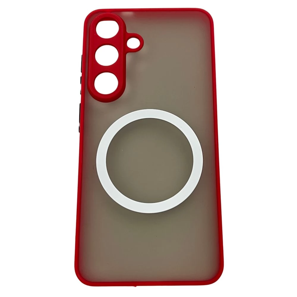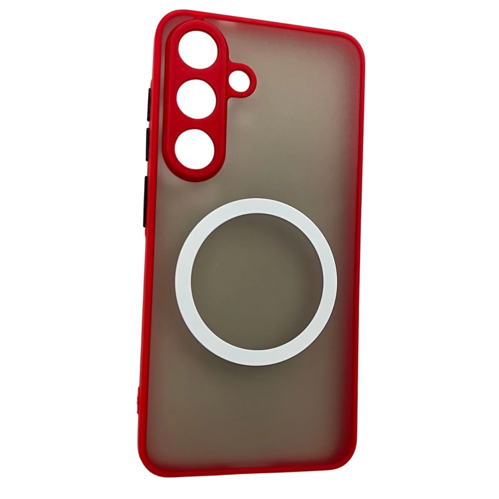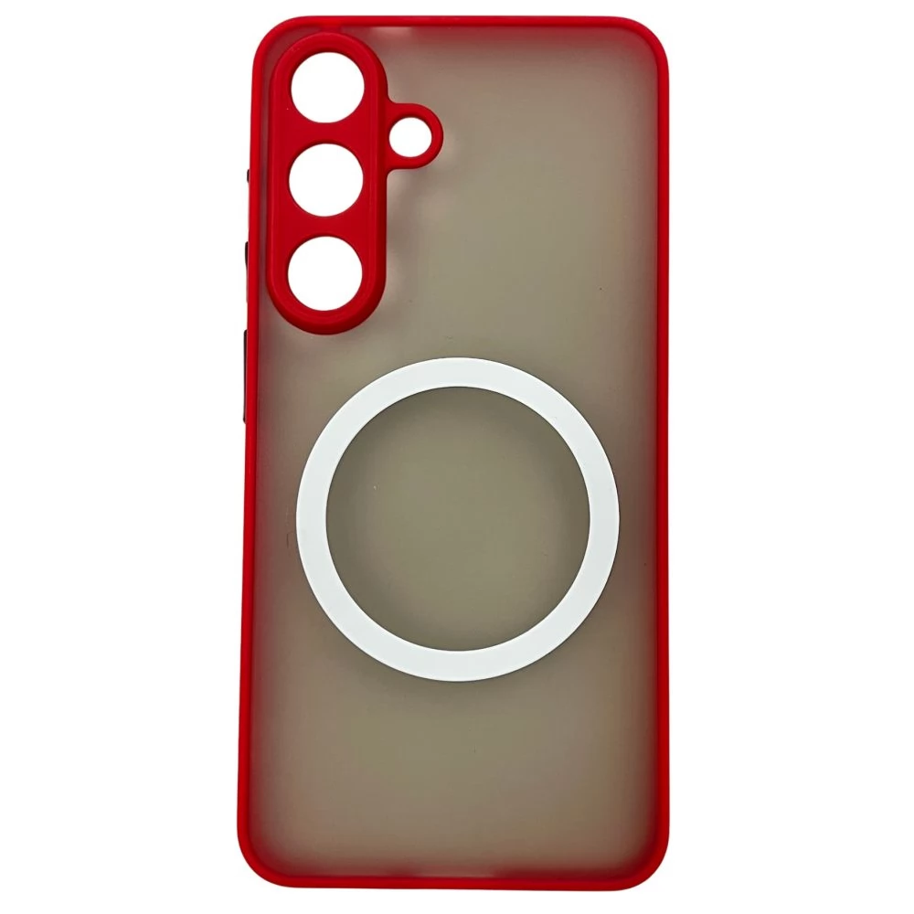 CELLECT Mágneses műanyag tok Samsung Galaxy S25 piros-fekete