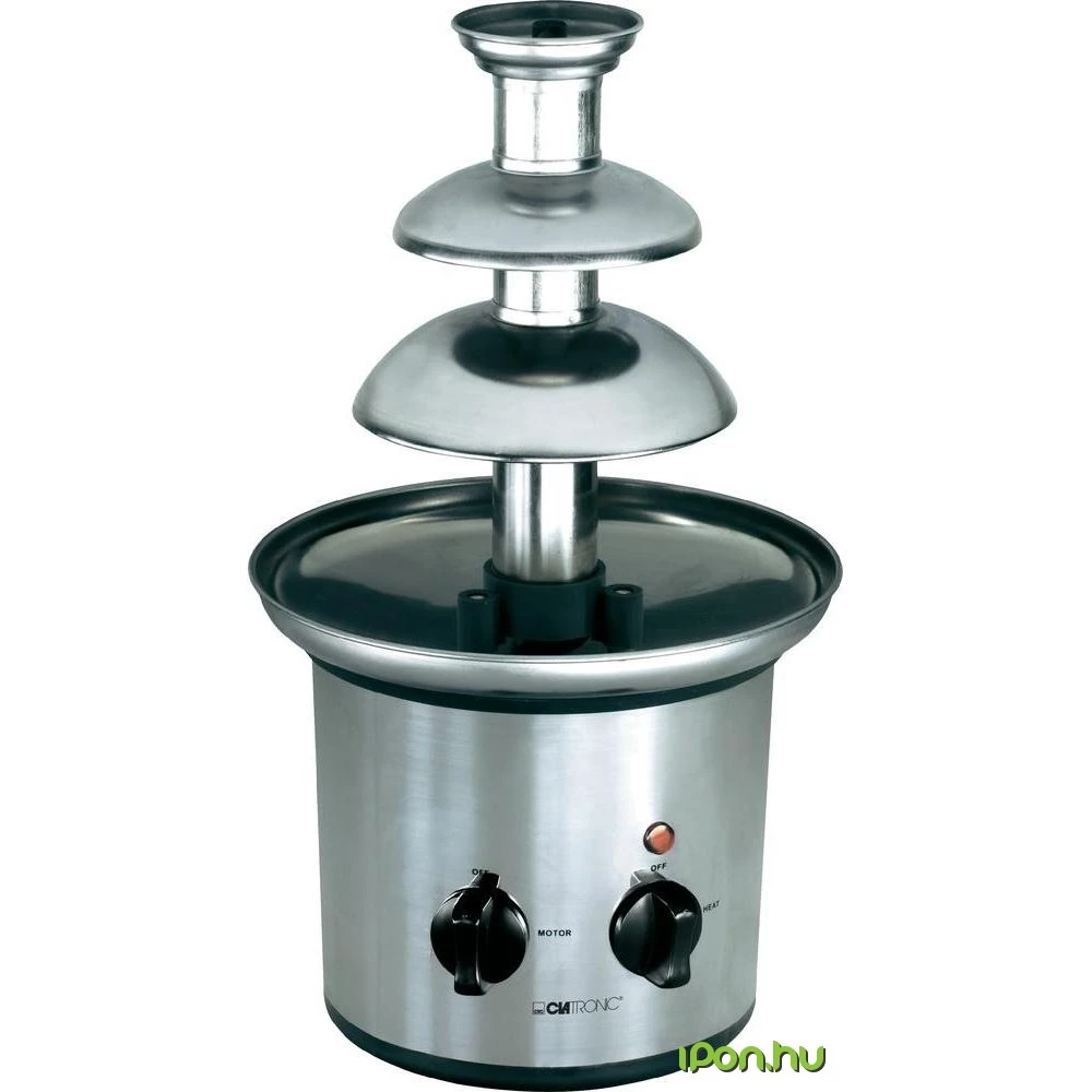 Meleg csokoládé csigaorsón keresztül jut el a csoki szökőkút tetejére, ahonnan lefolyik. Használható gyümölcshöz és süteményhez.