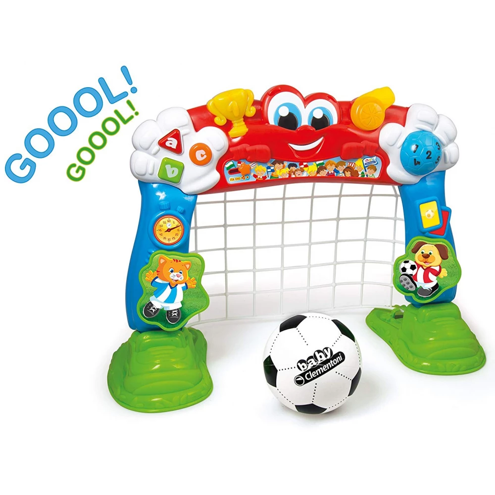 2 az 1 ben interaktív focikapu és oktató/fejlesztő játék: a gyerekek előre gyakorolhatják a betűket, számokat és színeket. A kapu üzemmódban egy szenzor érzékeli a hálóba érkező labdát. Mérete: 580 x 460 x 143 mm.
