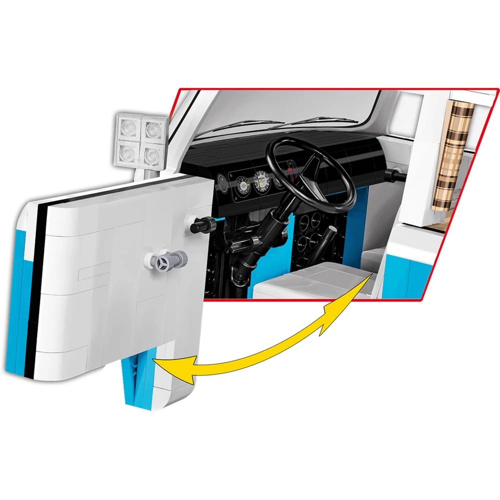 A COBI Volkswagen T2b Bus építőjáték egy lenyűgöző, 2366 darabos modell, amely 1:12 méretarányban készült. A világoskék és fehér színkombináció hűen idézi fel a legendás VW busz ikonikus megjelenését.