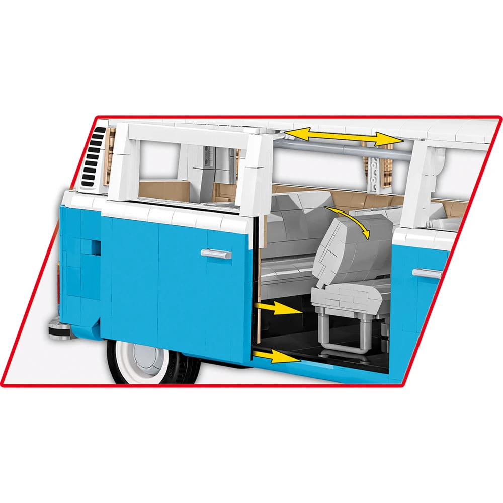 A COBI Volkswagen T2b Bus építőjáték egy lenyűgöző, 2366 darabos modell, amely 1:12 méretarányban készült. A világoskék és fehér színkombináció hűen idézi fel a legendás VW busz ikonikus megjelenését....