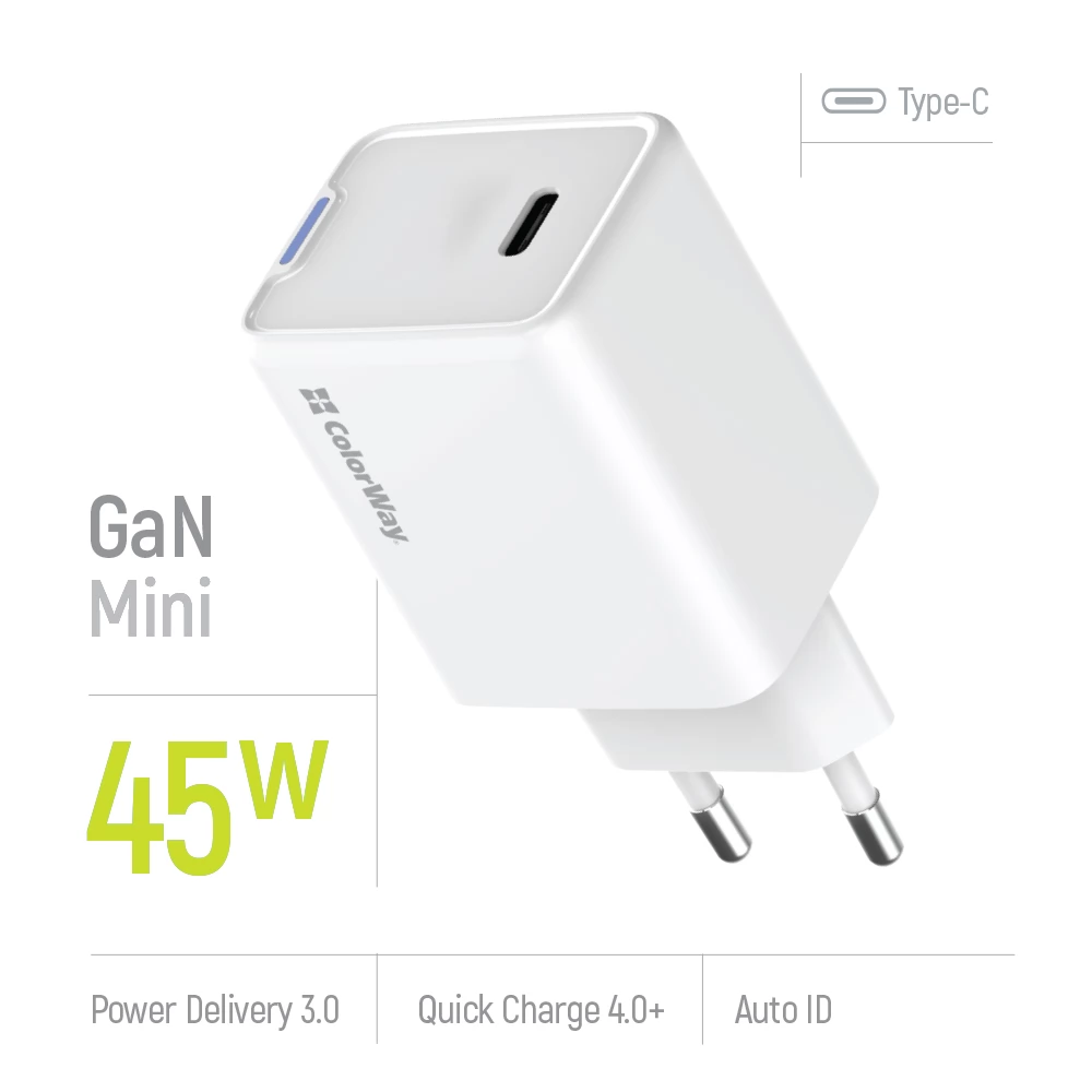 COLORWAY AC Charger GaN Mini 45W PD Port PPS USB-C fehér