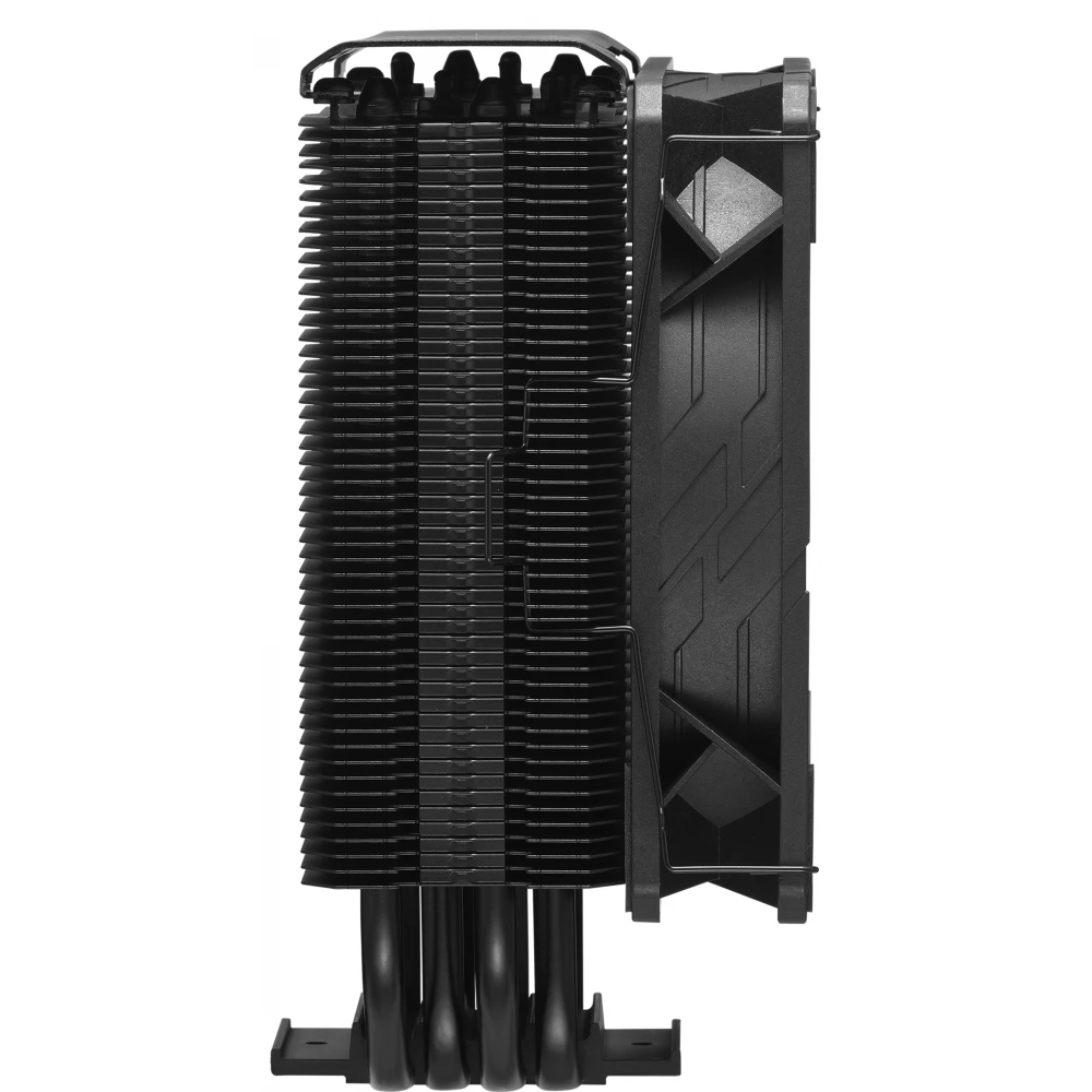 Torony kialakítású, hővezető csöves univerzális CPU hűtő egy darab 120mm-es PWM sebesség szabályzású ventilátorral. A hűtés különlegessége a teljesen fekete festéses felül az elegáns hűtőborda fedlap...