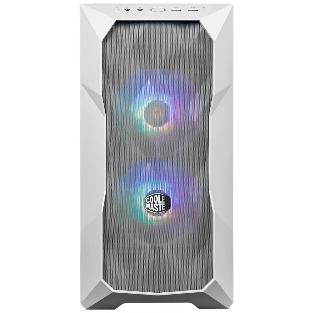 Micro ATX formátumú Mini-torony kialakítású számítógépház 2 db beépített ARGB ventilátorral.