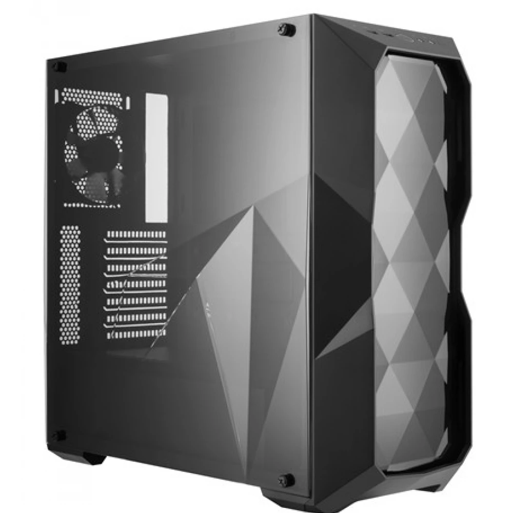 ATX formátumú elegáns, egyedi megjelenésű fekete színű számítógépház.