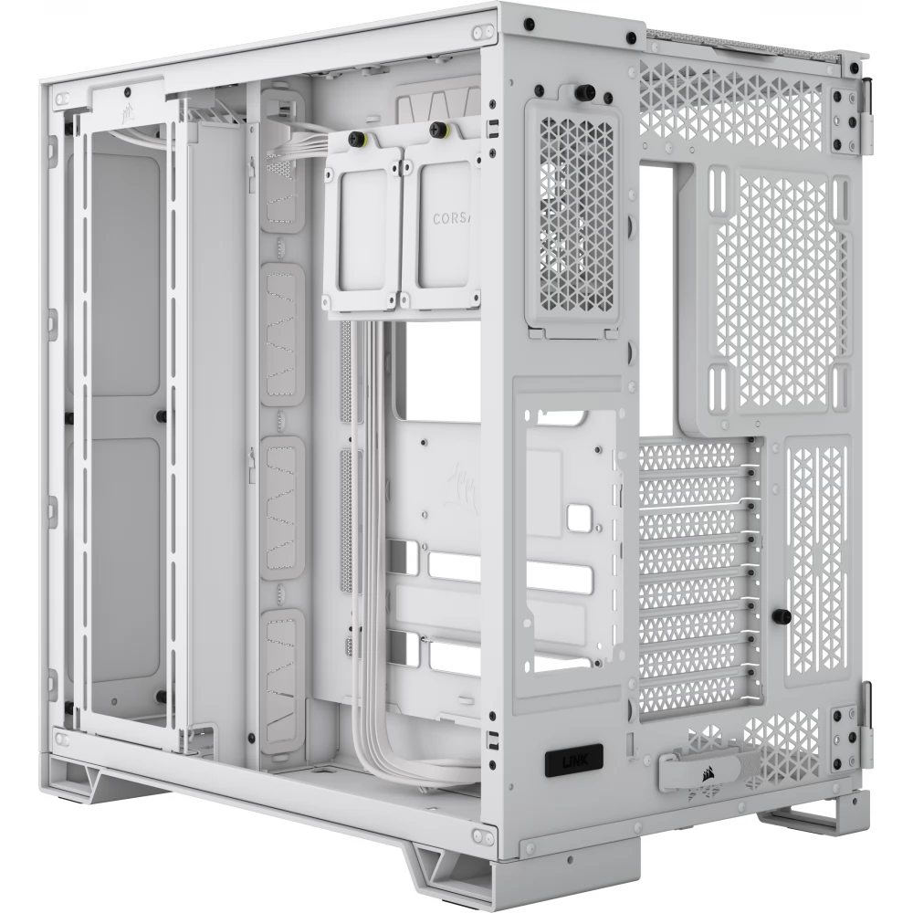 A CORSAIR 6500D AIRFLOW E-ATX formátumú Midi-torony kialakítású, kétkamrás számítógépház kivételes légáramlást és hűtést biztosít a teljesen hálós panelekkel és a kétkamrás kialakítással bármilyen csúcs konfigurációnak.