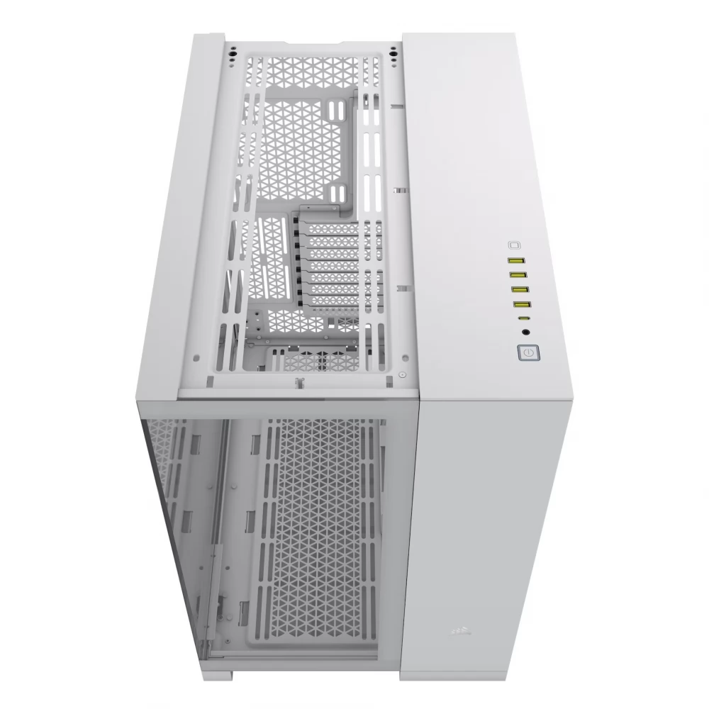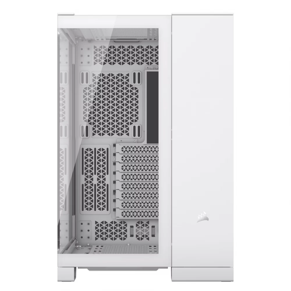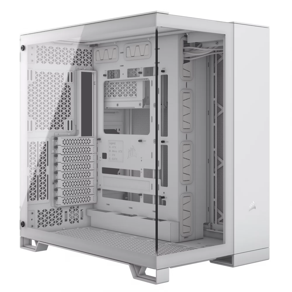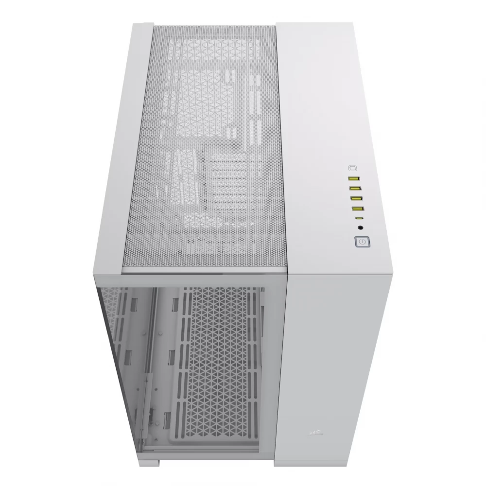 A CORSAIR 6500X TG egy középkategóriás, kétkamrás PC-ház, mely kivételes légáramlást és hűtést biztosít teljesen hálós panelekkel és kétkamrás kialakítással a szervezett, lenyűgöző konstrukció érdekében.
