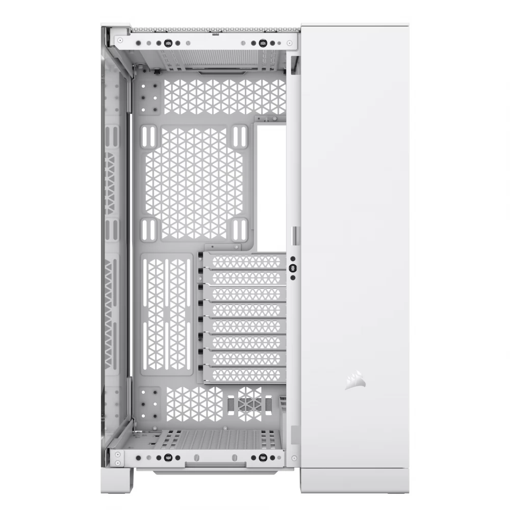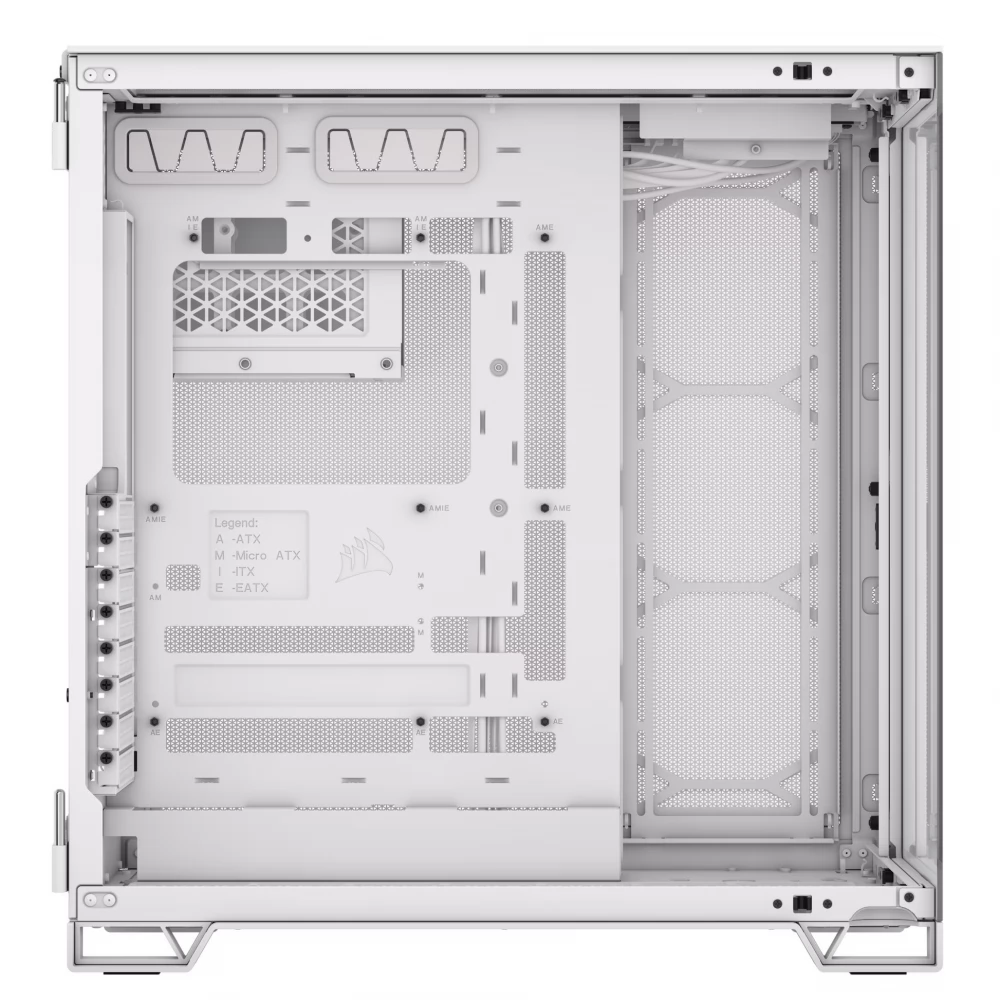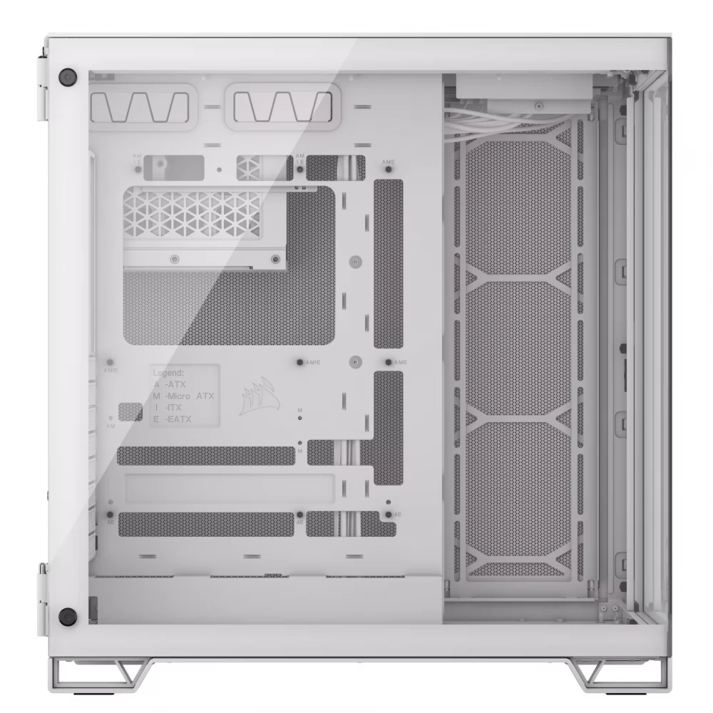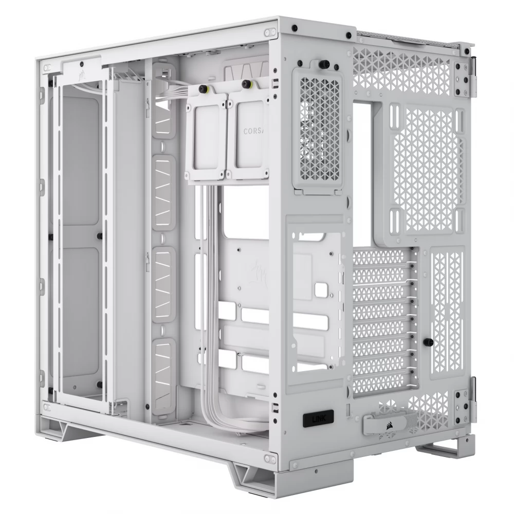 A CORSAIR 6500X TG egy középkategóriás, kétkamrás PC-ház, mely kivételes légáramlást és hűtést biztosít teljesen hálós panelekkel és kétkamrás kialakítással a szervezett, lenyűgöző konstrukció érdekében.