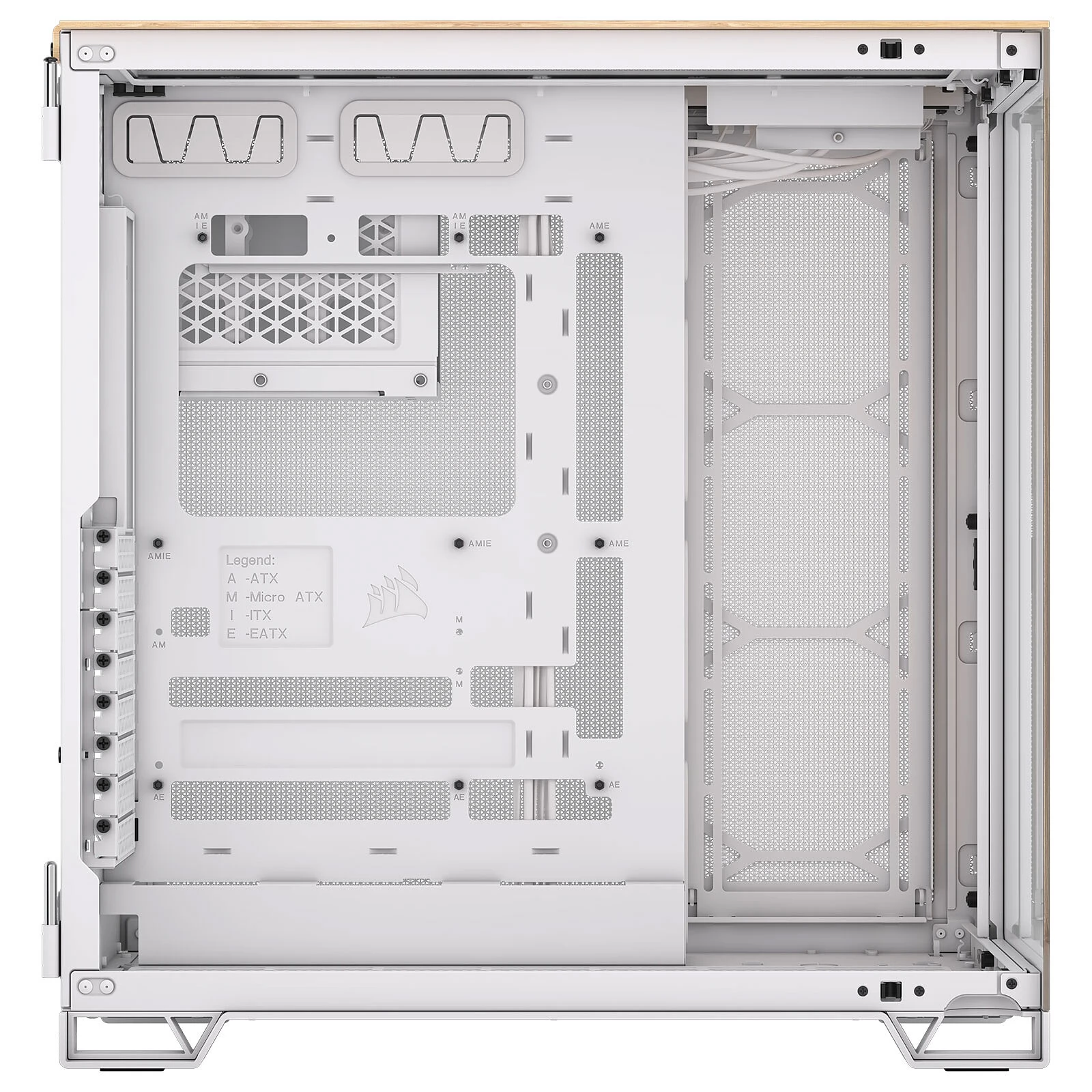 A CORSAIR 6500X E-ATX formátumú Midi-torony kialakítású, kétkamrás számítógépház kivételes légáramlást és hűtést biztosít a teljesen hálós panelekkel és a kétkamrás kialakítással bármilyen csúcs konfigurációnak.