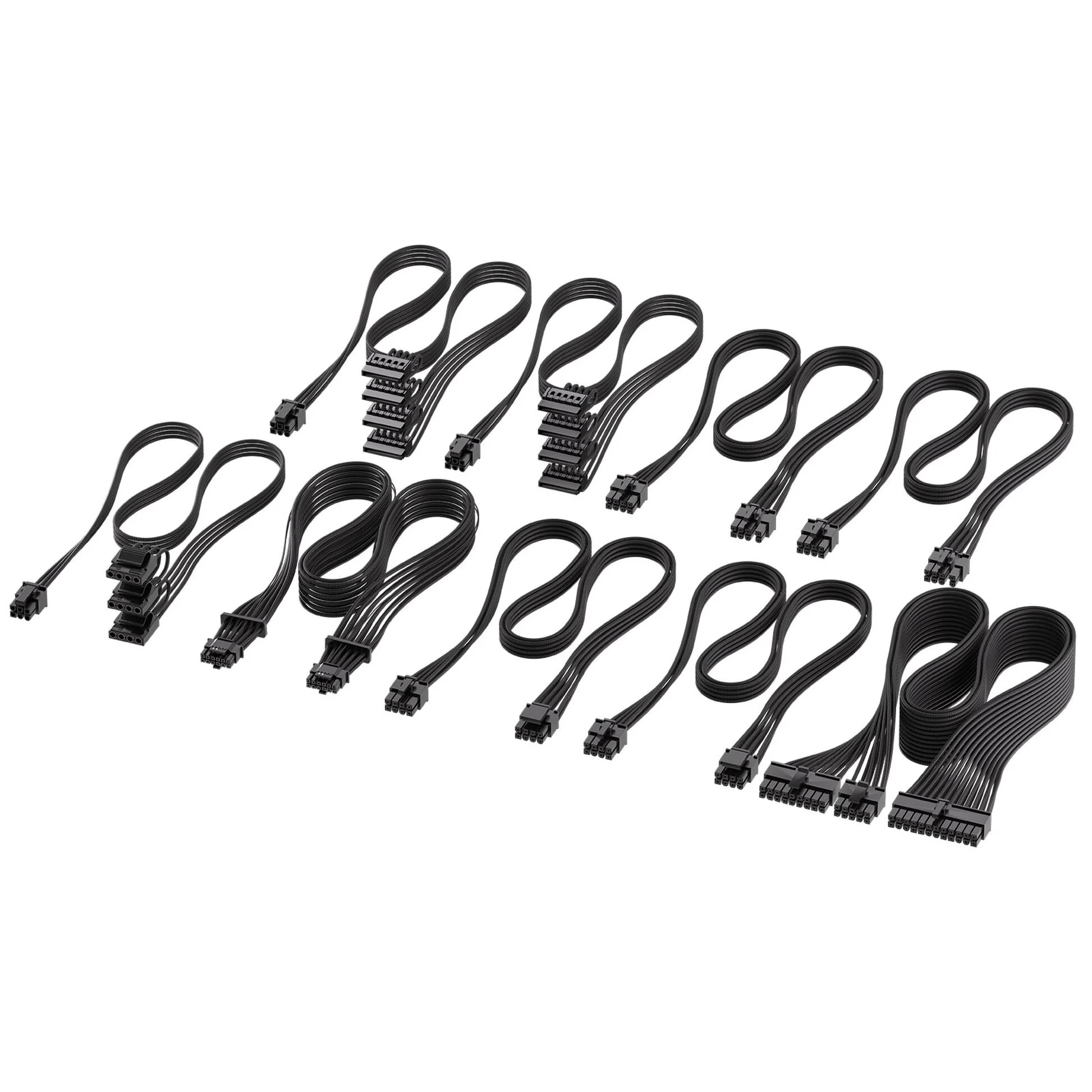 A tápegység teljesen moduláris kialakításának köszönhetően nemcsak időt takaríthat meg a telepítés során, hanem rengeteg stresszt is. Az alkatrészekhez szükséges kábelek természetesen a szállítási terjedelem részét képezik. Csak a valóban szükséges kábelek tartoznak a beépítéshez, különösen a tartozékok esetében. Így teljesen elkerülhetők a nem kívánt kábelek, amelyek csak útban vannak az építkezés során.