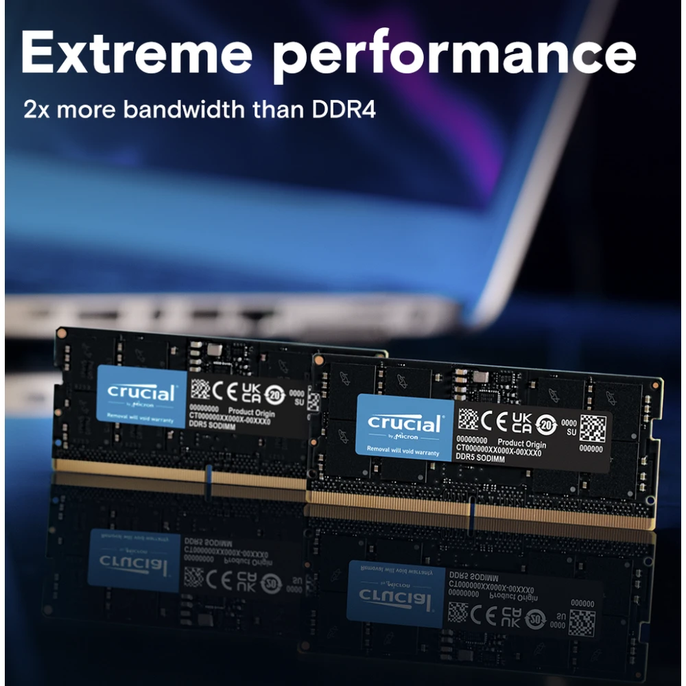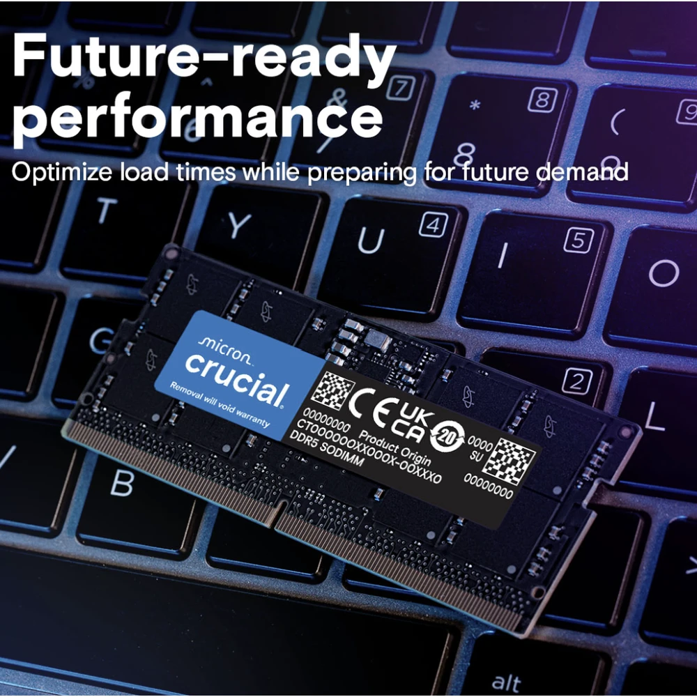 A Crucial 16GB Notebook DDR5 5600MHz CL46 memóriát kifejezetten a DDR5 SODIMM modulokat támogató gépekhez tervezték. Minden olyan felhasználó számára kiváló választás, aki az informatikai eszközök legfrissebb fejlesztéseit igényli. A nagy teljesítményű, 5600 MHz-es sebességű modul javítja a számítógép teljesítményét, és lehetővé teszi a felhasználók számára, hogy minden erőfeszítés nélkül megbirkózzanak a legtöbb memóriaigényes feladattal.