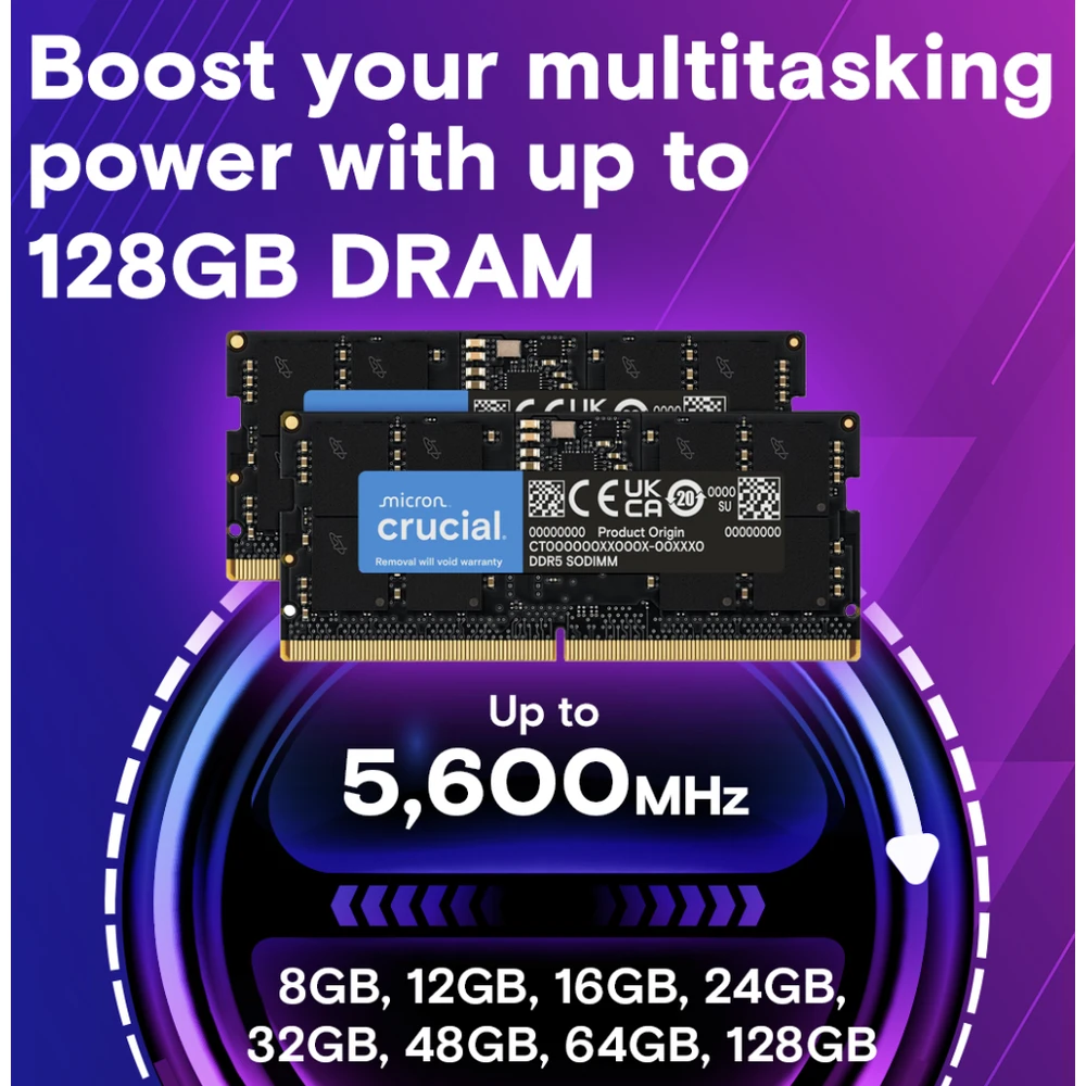 A Crucial DDR5 a 4-es kiadásban 50%-kal gyorsabb, mint a DDR4, így a felhasználók azonnal extrém teljesítményt élvezhetnek. Még lenyűgözőbb, hogy a Crucial DDR5-öt a fokozott teljesítményre és a multitaskingra optimalizálták, nemcsak tesztelés közben, hanem valós körülmények között is. Több böngészőlap megnyitása és az alkalmazások közötti váltás most minden eddiginél gyorsabb.