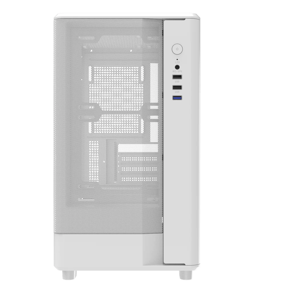 A ház előlapja hálós panel, amely javítja a légáramlást, és porszűrőként is funkcionál. A kialakítás tetején és alján további szellőzőnyílások is találhatók.