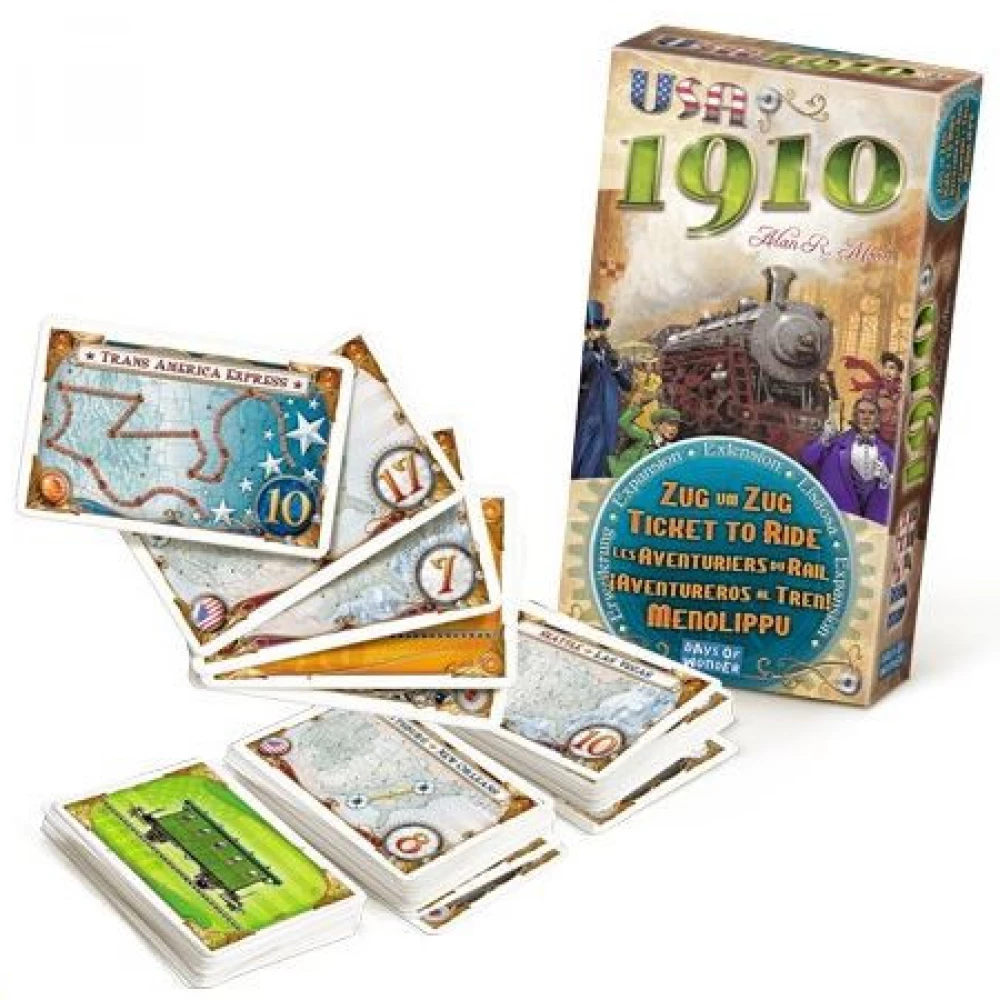 A Ticket To Ride USA 1910, a Ticket to Ride USA alapjáték kiegészítője. Ebben a csomagban 181 új, nagyformátumú kártyalapot találhatsz, amely tartalmaz 35 új menetjegyet, egy új GlobeTrotter bónusz kártyát, valamint egy teljes pakli vagonkártyát.