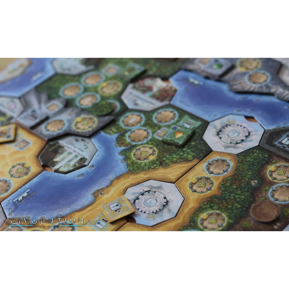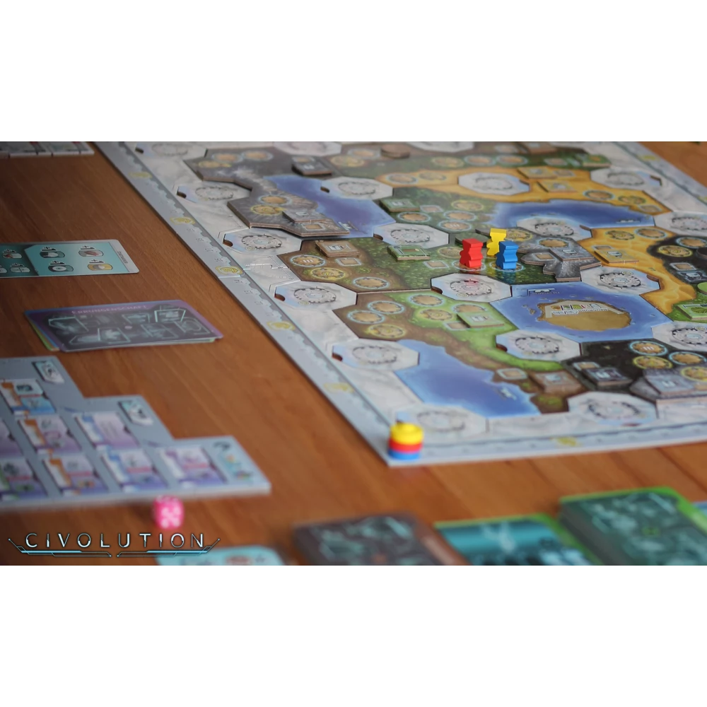 A Civolution egy összetett, mély stratégiai társasjáték 1–4 játékos számára. Szóló módban is kihívást jelent, társaságban pedig rengeteg taktikát és újrajátszhatóságot kínál. A változatos modulok, lapkák és kártyák gondoskodnak arról, hogy két parti soha ne legyen egyforma – minden alkalommal új stratégiát, új világot és új élményt fedezhettek fel.