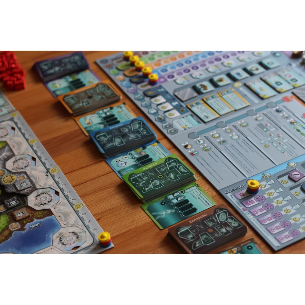 A játék központi eleme a dobókockalehelyezés, amellyel aktiválhatjátok a fejlesztéseket és akciókat a technológiai „vezérlőpulton”. A moduláris játéktábla újra és újra más földrészt tár elétek: erdők, tengerek, hegyek és falvak várják, hogy benépesítsétek őket. A kártyák sokasága pedig gondoskodik arról, hogy minden egyes parti teljesen új stratégiát követeljen és új élményt nyújtson.