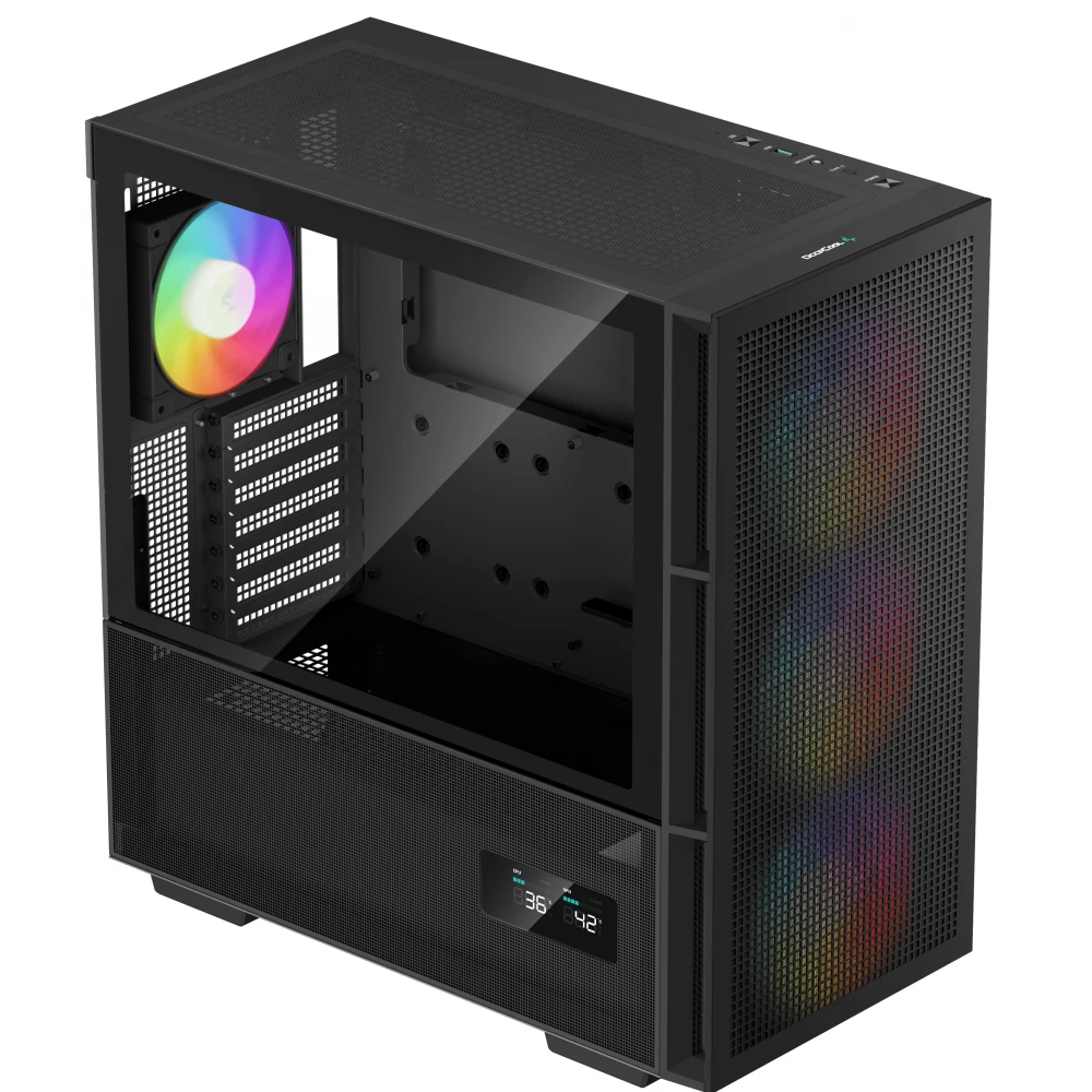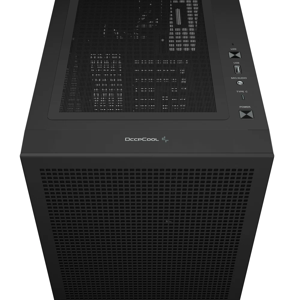 A DEEPCOOL CH560 Digital egy E-ATX formátumú, középkategóriás toronyház, amely a teljes házon átívelő fokozott légáramlásra összpontosít. Három fényes, PWM-es, 140 mm-es ARGB ventilátor található a fő rekesz előtt, egy hibrid oldalpanel és egy kettős állapotú digitális képernyő különbözteti meg a CH560 Digital-t a versenytársaktól.