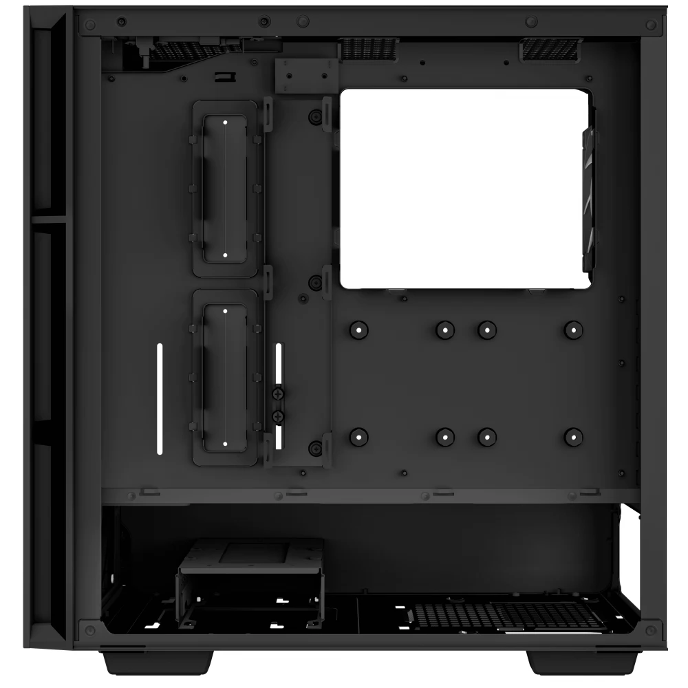 Kivételes légáramlást biztosít a ház minden oldaláról, a nagy légáramlású előlaptól a hibrid edzett üveg oldalpanelig, így a hűvös levegő mindig elérhető a modern, nagy teljesítményű alkatrészek számára.