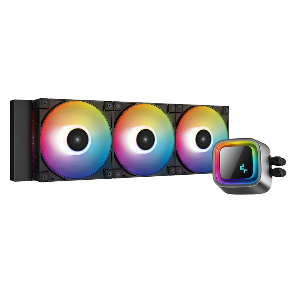 Kompakt, univerzális vízhűtés 3 darab 120mm-es vezérelhető ARGB világítású ventilátorral és CPU vízhűtés blokkal.