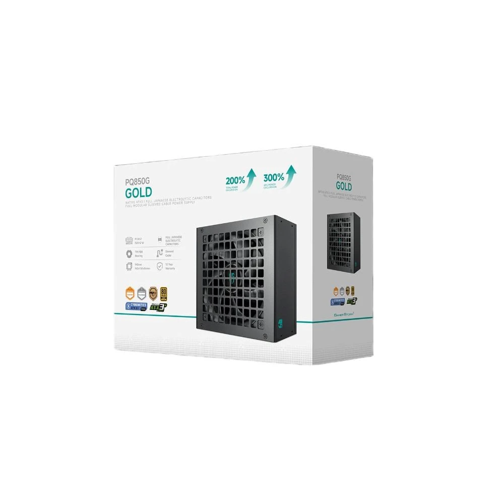 A DeepCool GamerStorm PQ850G teljesen moduláris tápegység, melynek teljesítménye 850W. Ez a kompakt és hatékony eszköz 120 mm-es ventilátorral rendelkezik, ami biztosítja a megfelelő hűtést, még a legújabb és legnagyobb teljesítményű hardverkomponenseknél is.