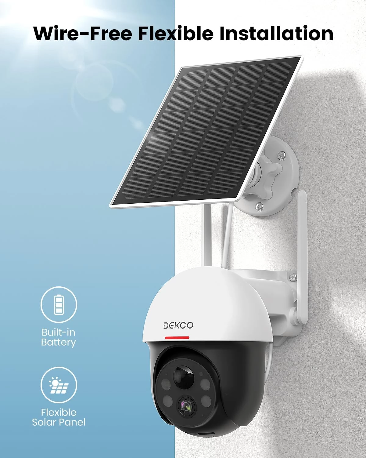 A DEKCO DC9L kültéri kamera kiváló választás azok számára, akik megbízható és fejlett megoldást keresnek otthonuk megfigyelésére. 5 MP felbontást kínál, így a fényviszonyoktól függetlenül kivételes képminőséget garantál. A beépített fény- és hangriasztó növeli a biztonságot, a robusztus kialakítás pedig hosszú évekig megbízható működést biztosít. A napelemnek köszönhetően a kamera a hagyományos áramforrásoktól függetlenül is tud működni, így nincs szükség tápkábelekre és csökkenti a környezetterhelést.