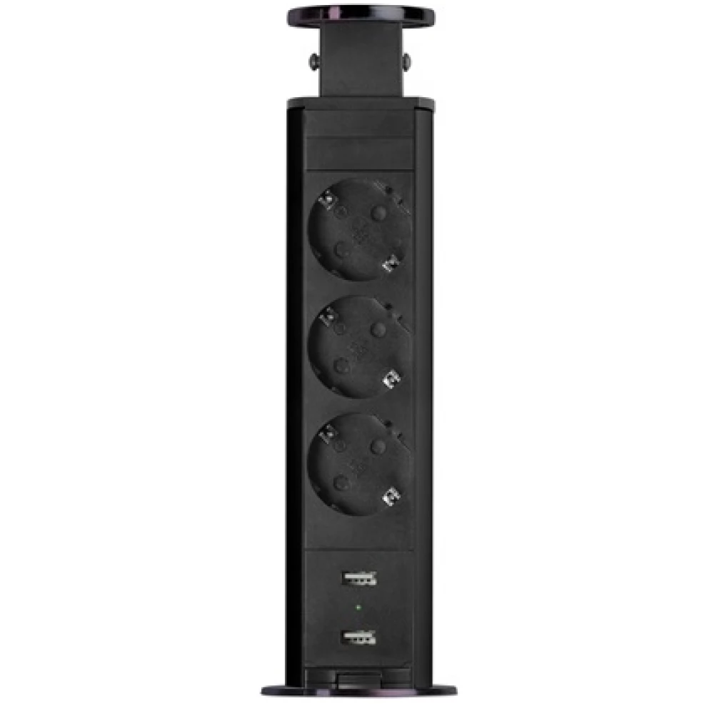 Süllyeszthető elosztó irodai és otthoni felhasználásra, fém házzal, 3 db gyermekvédelemmel ellátott aljzattal és 2 db USB csatlakozóval. Asztala, bútora legyen mindig elegáns és rendezett, mégis funkcionális. Az USB aljaztról könnyen töltheti telefonját, tabletjét vagy egyéb digitális eszközeit. A rejtett elosztó kiváló megoldás lehet ha már például kész konyhával rendelkezik, de nincs elegendő konnektor a kívánt helyen. Ilyenkor falvésés és villamos hálózat bővítés nélkül, remek alternatíva lehet egy rejtett elosztó. Egy mozdulat és máris rendelkezésre áll 3 szabad konnektor. Ideális lehet olyan elektromos eszközökhöz, amit nem folyamatosan használunk, kenyérpirító, vízforraló... Ha használaton kívül vannak, a "töltőoszlop" egy mozdulattal elrejthető, ezzel is megkönnyítve például a takarítást, valamint rendezett, letisztult külsőt ad a helységnek.