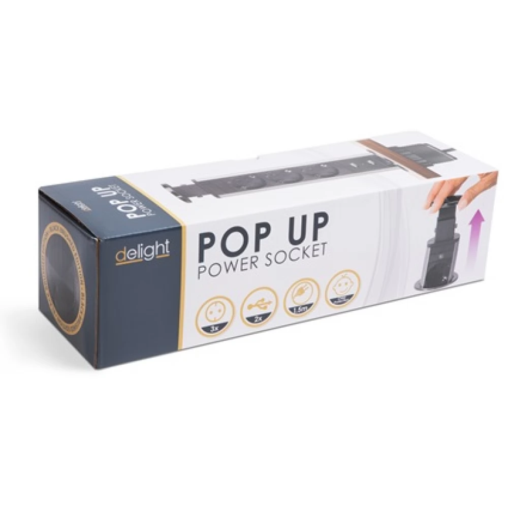 DELIGHT 20430BBU Rejtett Elosztó 3 aljzat 2x USB 1.5m fekete