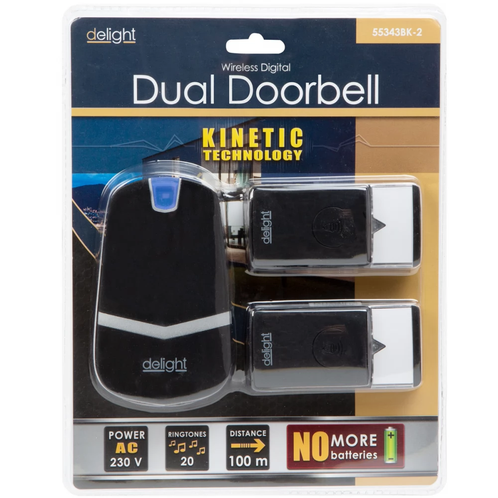 DELIGHT 55343BK-2 digitális elem- és vezeték nélküli csengő 2 nyomógombbal – Kinetic
