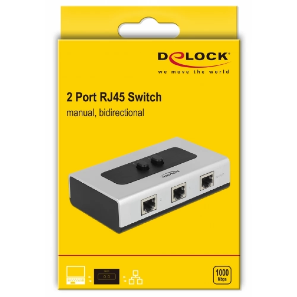 DELOCK 87673 Manuális kétirányú RJ45-kapcsoló 10/100/1000 Mb/s 2 porttal