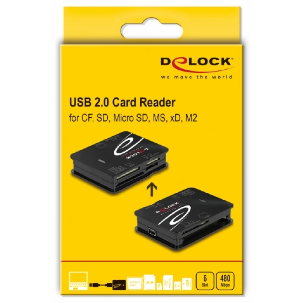 DELOCK 91007 USB 2.0 kártyaolvasó CF / SD / Micro SD / MS / xD / M2 memóriakártyákhoz