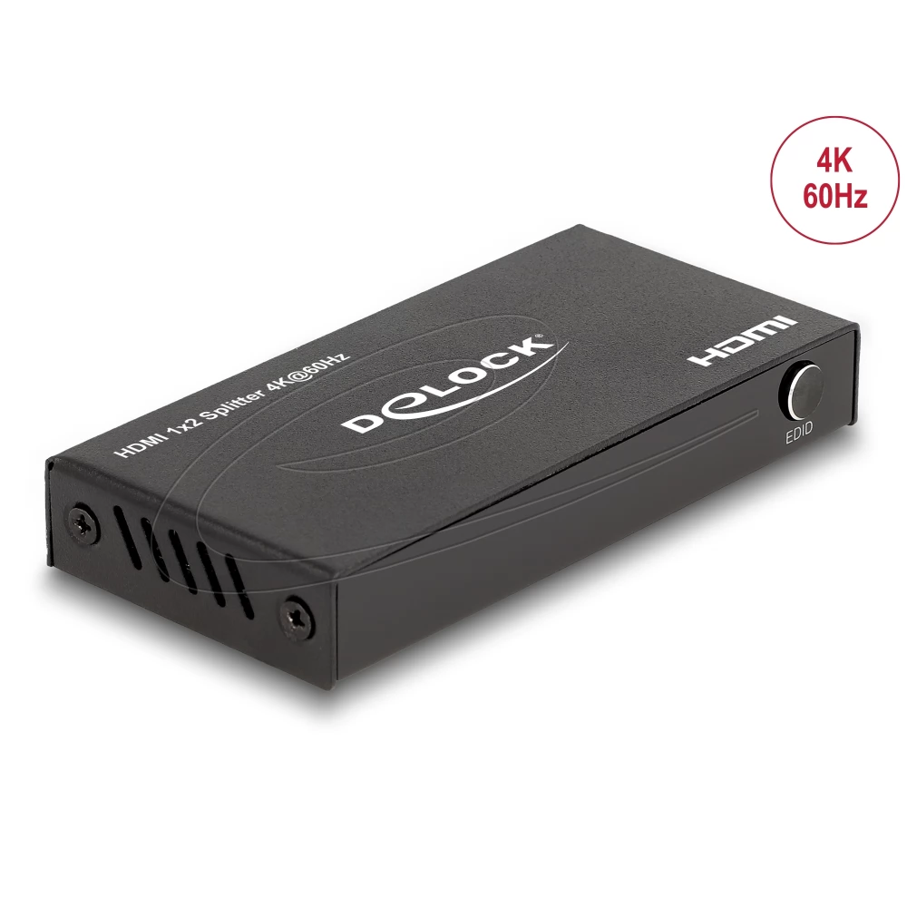 Ez a Delock gyártmányú elosztó HDMI-jelet fogad egy asztali vagy hordozható számítógépről, és a jelet két csatlakoztatott kijelzőre osztja el. Ennek köszönhetően két HDMI-monitor működtethető egy HDMI-csatlakozóval.